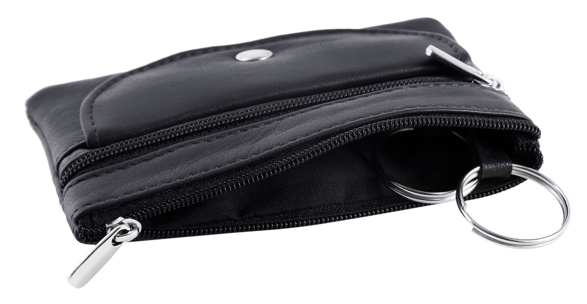 Het sleuteletui van het merk Excellanc is gemaakt van echt leer. De binnenvoering is van polyester. Aan het sleuteletui zijn twee praktische sleutelhangers met een diameter van 25 mm bevestigd. Deze zijn aan de binnenkant van het tasje bevestigd met twee ca. 2 cm lange leren riempjes. Ze zijn ideaal voor het bevestigen van sleutels of hangers, maar ook voor bevestiging aan tassen of sleutelhangers. Het sleuteletui heeft een groot binnenvak en een ritsvak aan de buitenkant. Onder het ritsvak zit nog een vakje met een drukknoopsluiting. Het etui heeft een lengte van 8 cm, een breedte van 11,8 cm en een dikte van 1 cm. Het sleuteletui is perfect om sleutels in op te bergen. Kleingeld en pasjes kunnen er ook handig in opgeborgen worden. Klein maar met een grote impact, dit klassieke sleuteletui zal zeker indruk maken.