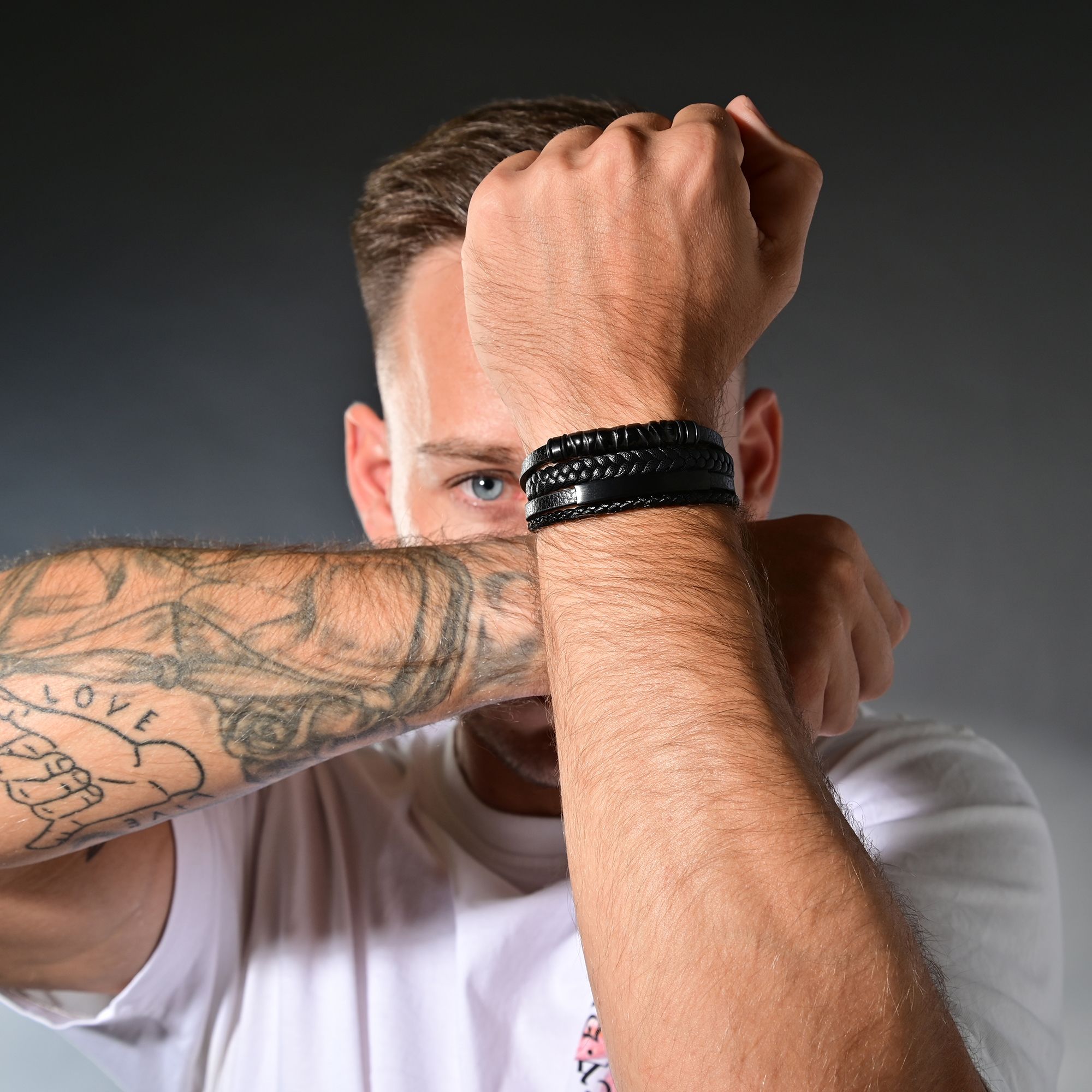 Das Armband aus hochwertigem Lederimitat besteht aus insgesamt vier unterschiedlichen Strängen, die jedes für sich das Armband komplett machen.