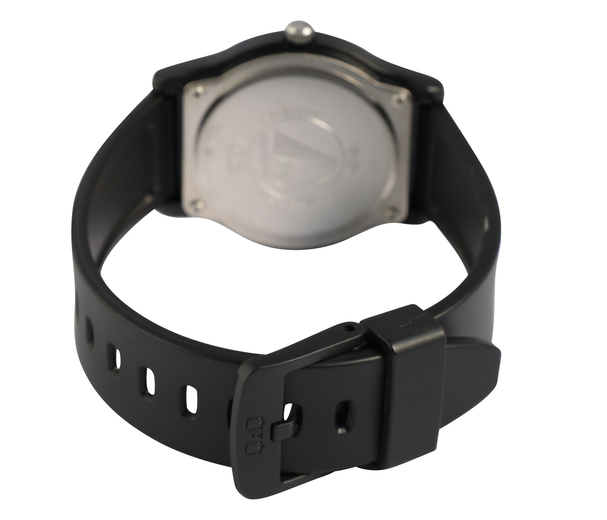 Diese sportliche Armbanduhr der Marke Q&Q (by Citizen Watch Co. LTD) ist in klassischem Schwarz gehalten. Sie bietet nicht nur ein tolles Design, sondern überzeugt auch durch Widerstandsfähigkeit und Zuverlässigkeit. Die perfekte Wahl, um Ihrem Alltagslook eine sportliche und schlichte Note zu verleihen!