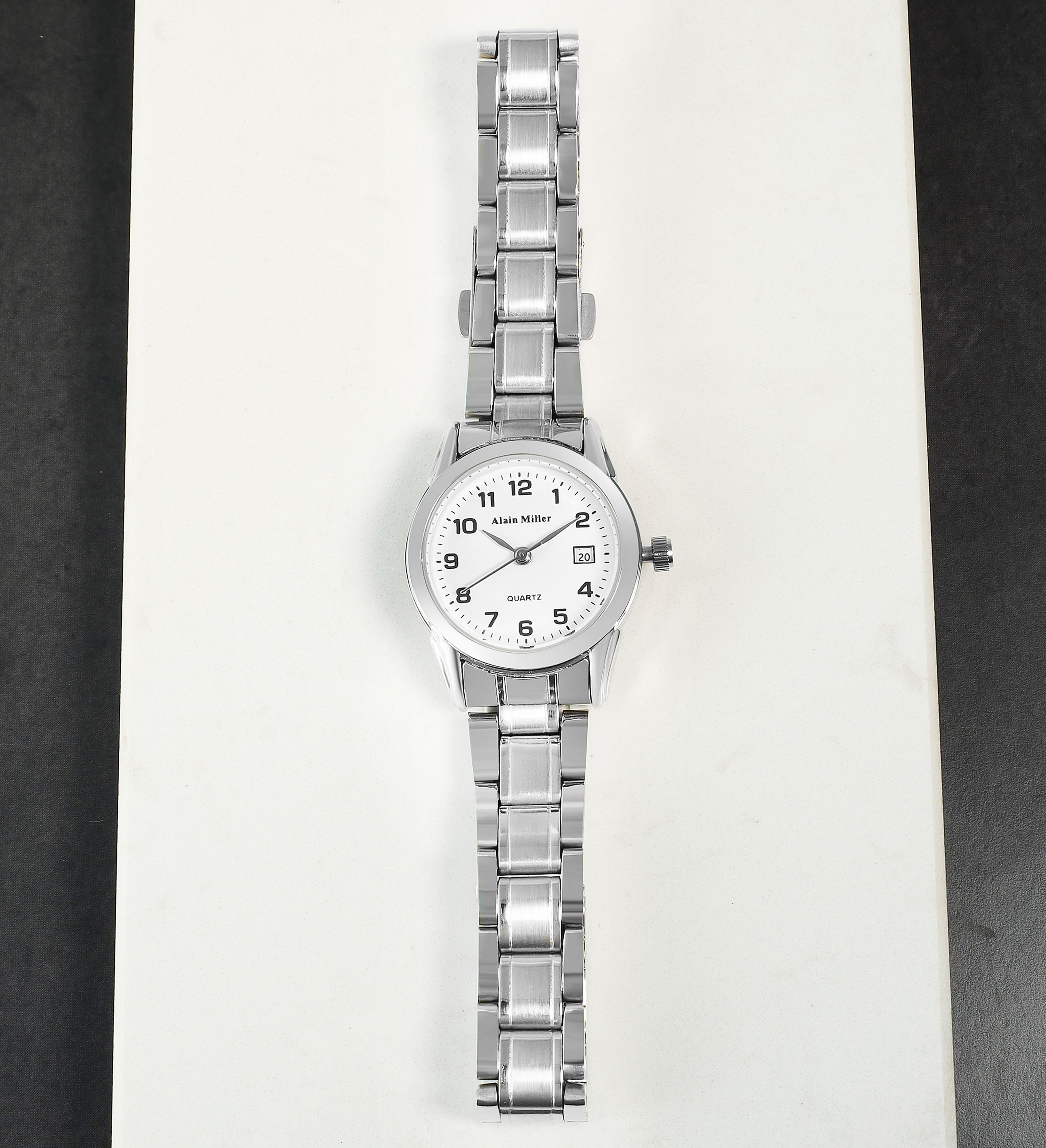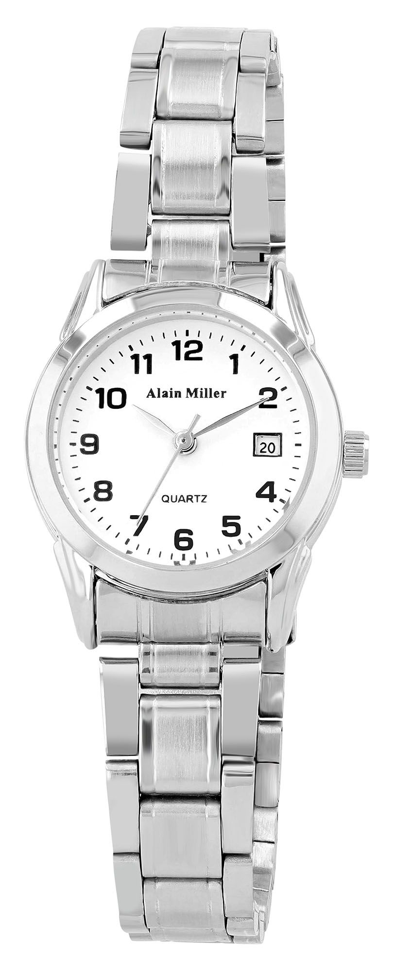 Alain Miller Damenuhr mit Gliederarmband, Edelstahl, silberfarben/ weiß