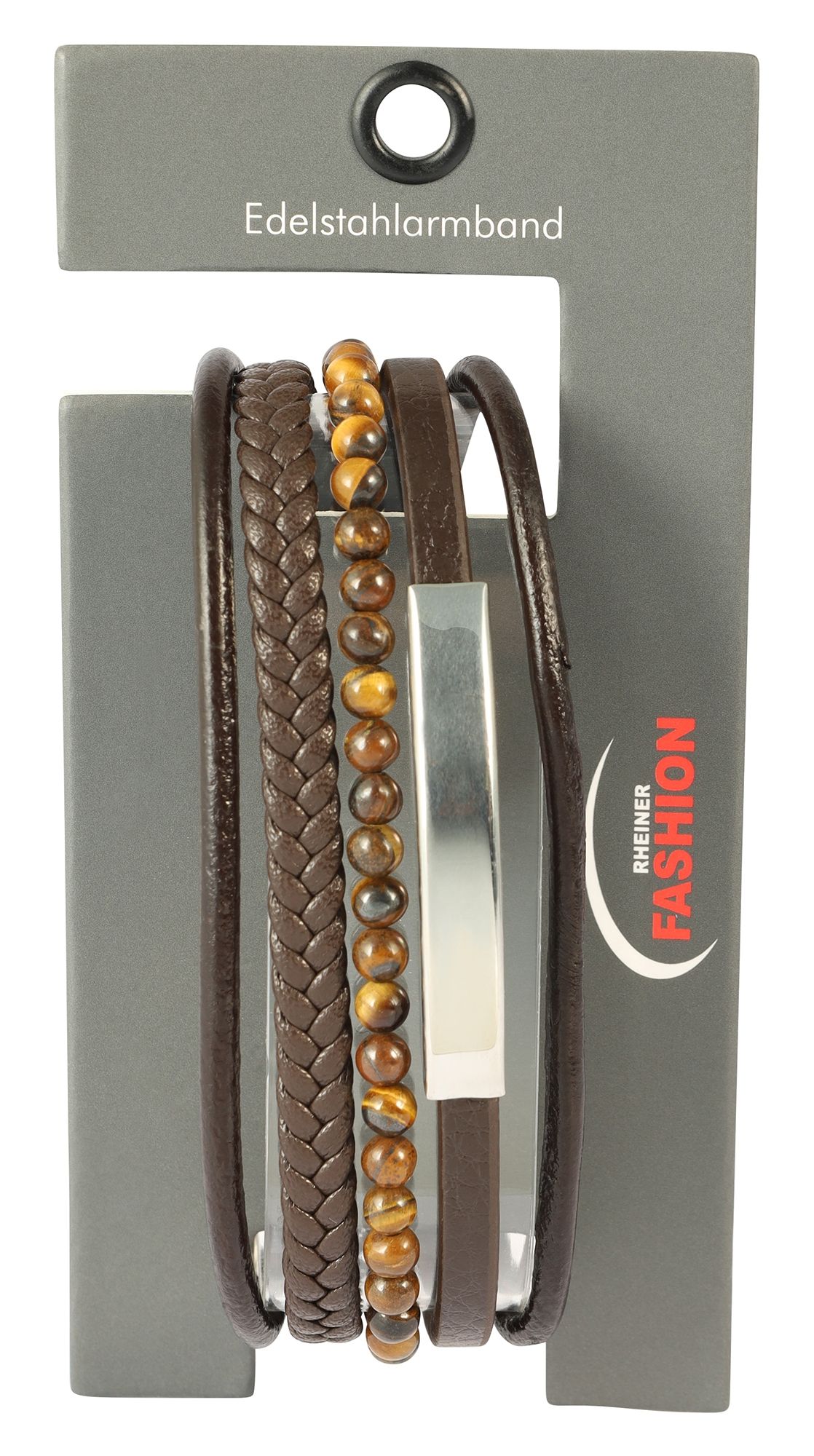 Ein weiteres Highlight des Armbandes ist der fünfte Strang, der mit perfekt aufgereihten braunem Tigeraugen verziert ist und dem Armband eine natürliche und einzigartige Note verleiht.