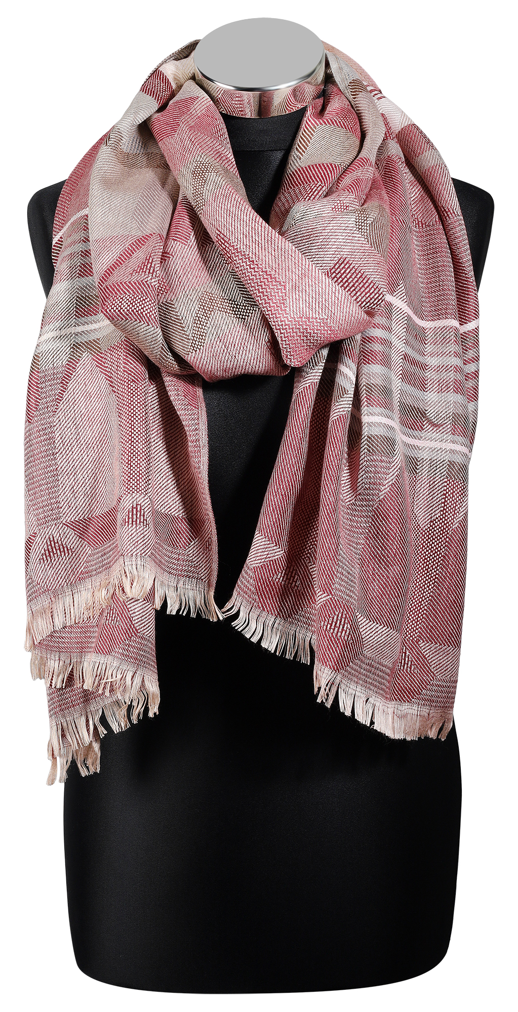 Productinformatie "Winterschal gemustert Rot/ Beige, 100% Viskose, VE 4"