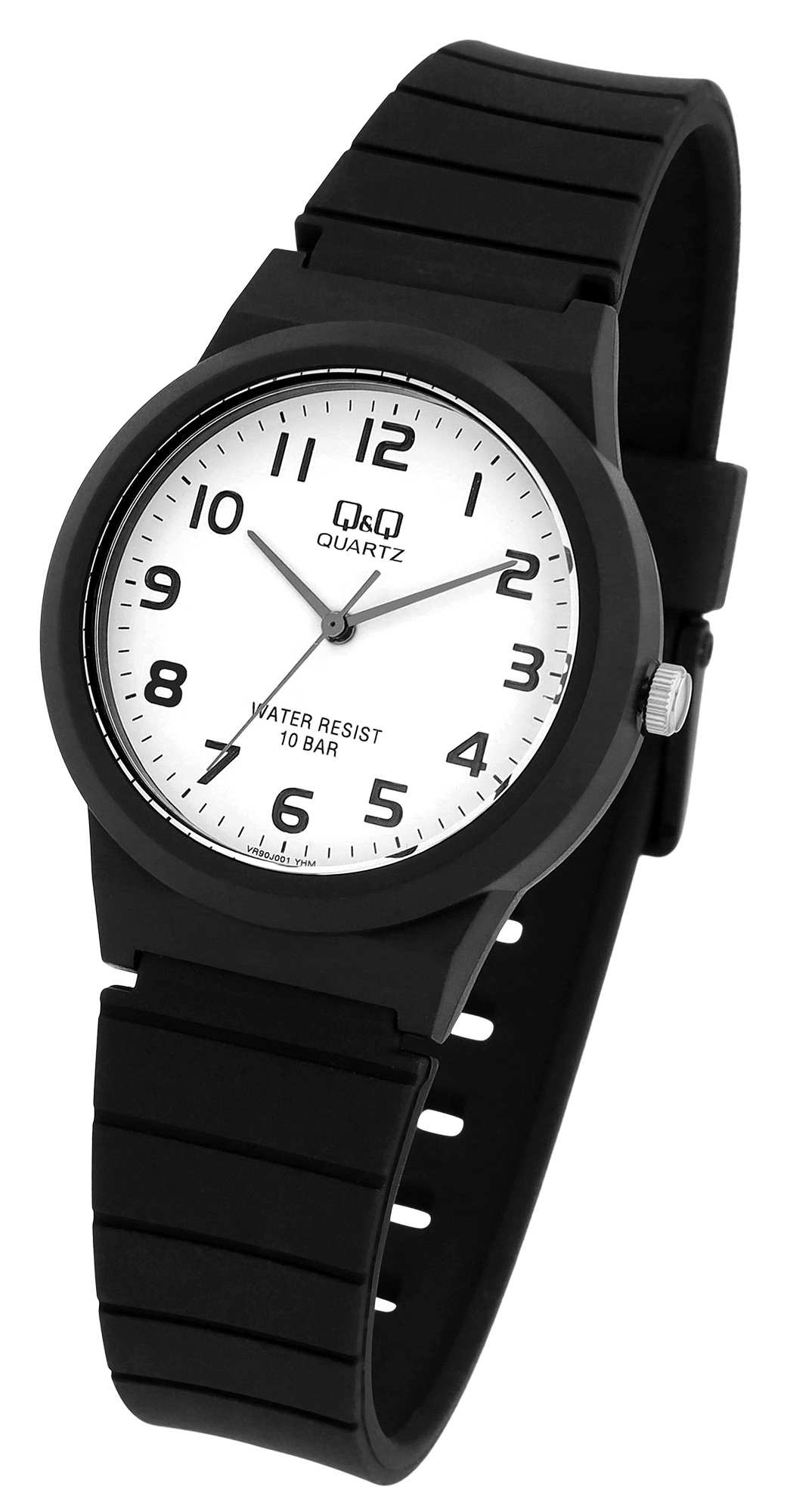 Productinformatie "Q&Q Herrenuhr, Kunststoff, Silikonarmband, schwarz, 10 ATM, Ø 36 mm"