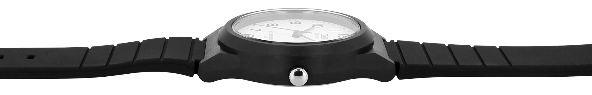 Ein klares weißes Zifferblatt besticht durch schlichte Eleganz und die gut lesbare Kombination aus Strichindizes und arabischen Ziffern in Schwarz. Das weiche schwarze Silikonarmband mit einer Bandbreite von 20 mm am Steg und einer Gesamtlänge von 23,7 cm mit Gehäuse wird sicher durch eine robuste Edelstahl-Dornschließe verschlossen und macht diese Herrenuhr zum idealen Begleiter für jeden Tag – ob im Büro, in der Freizeit oder bei besonderen Anlässen. Schlichte Eleganz und präzise Technik im Innern machen diese Uhr zu einem unverzichtbaren Accessoire.