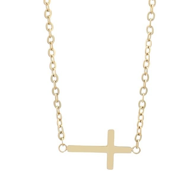 Het hoogtepunt van deze ketting is de kruis hanger, die 7 x 14 x 1 mm meet en een subtiele maar indrukwekkende aanwezigheid heeft. Het bijzondere is de manier waarop de kruishanger is bevestigd, die niet zoals gewoonlijk hangt maar kruisgewijs in de ketting is geïntegreerd. Dit geeft de ketting een modieus tintje en maakt het een uniek accessoire dat elke look verfraait.