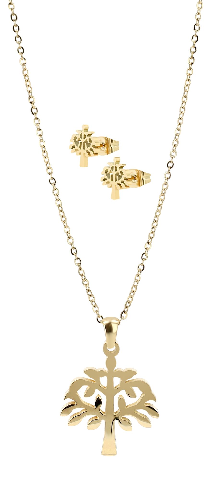 Productinformatie "Akzent Schmuckset "Sylva", Lebensbaum, Edelstahl, Kette & Ohrstecker, goldfarben"