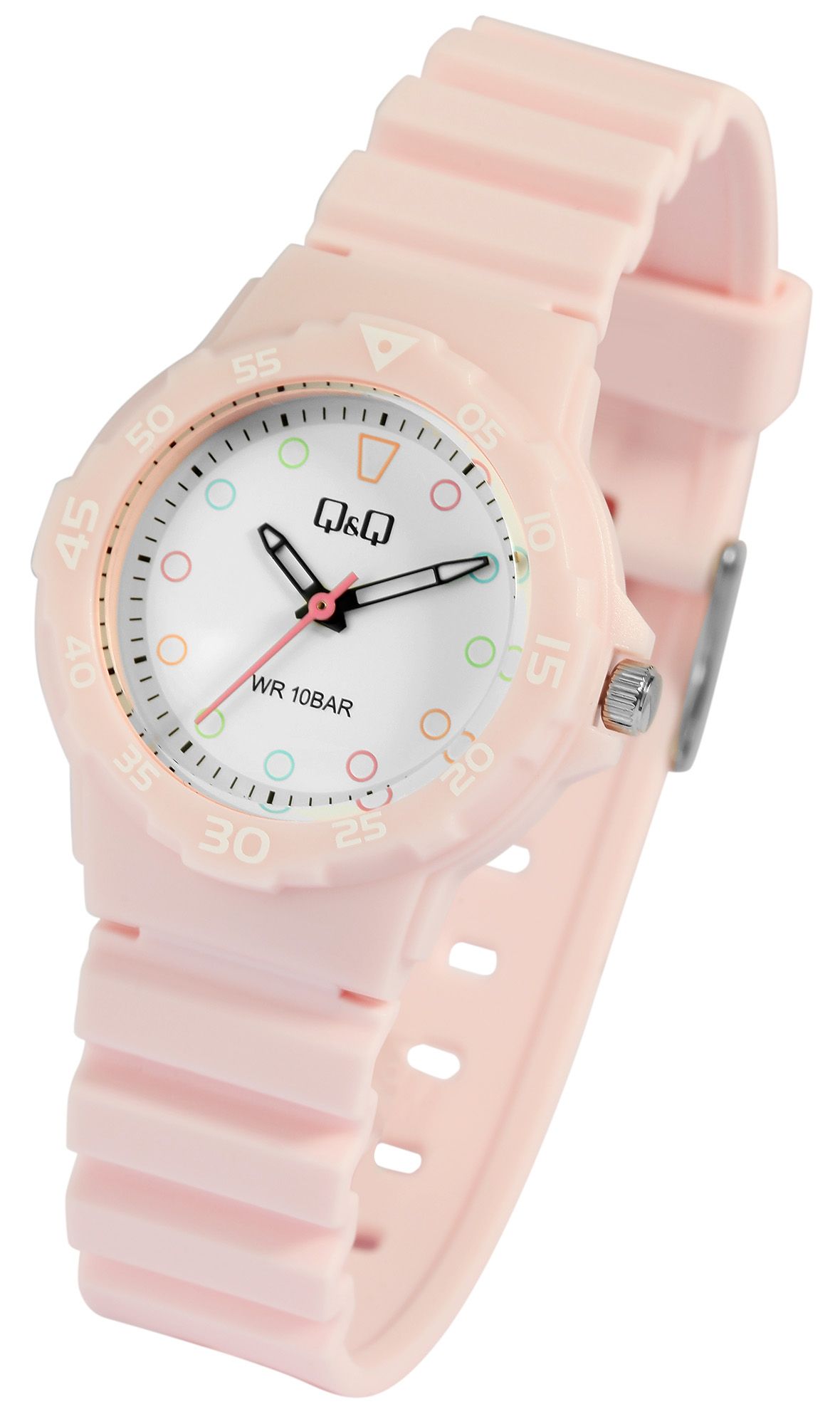 Diese fröhliche Q&Q - by Citizen Watch Co. LTD Uhr ist der perfekte Begleiter für aktive Damen und junge Mädchen, die einen farbenfrohen und zuverlässigen Zeitmesser suchen.