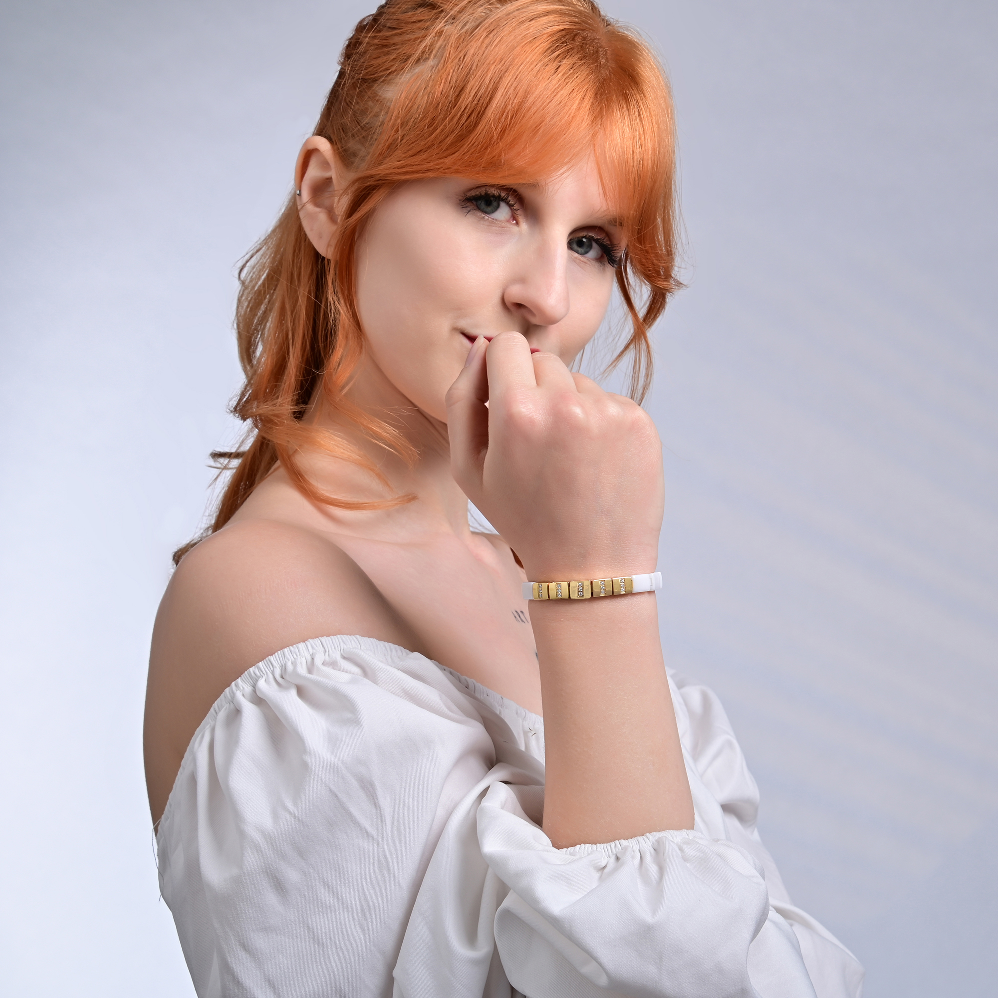 Das Gliederarmband "Arin" hergestellt aus Keramik und Edelstahl - ein elegantes und persönliches Schmuckstück.