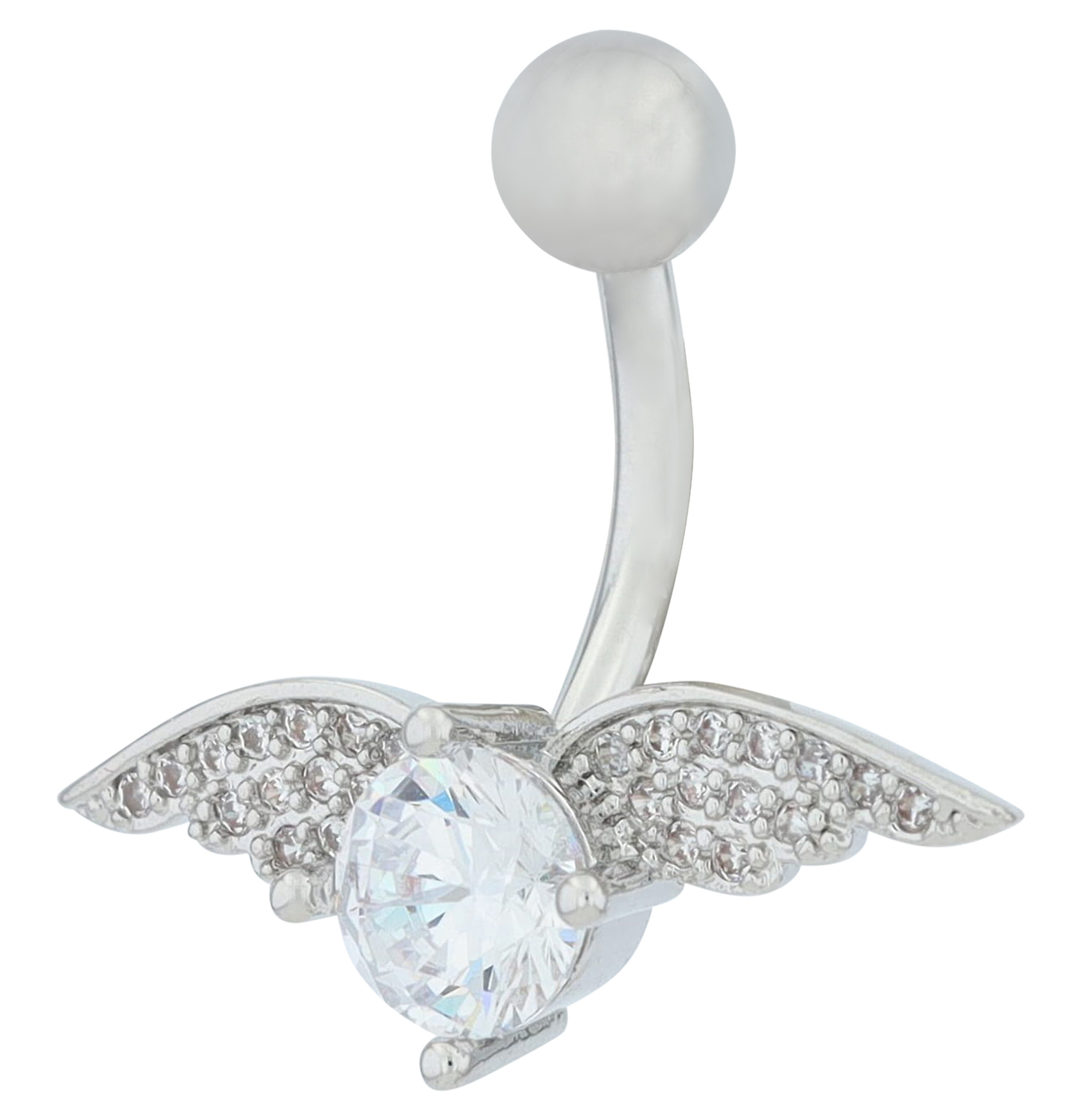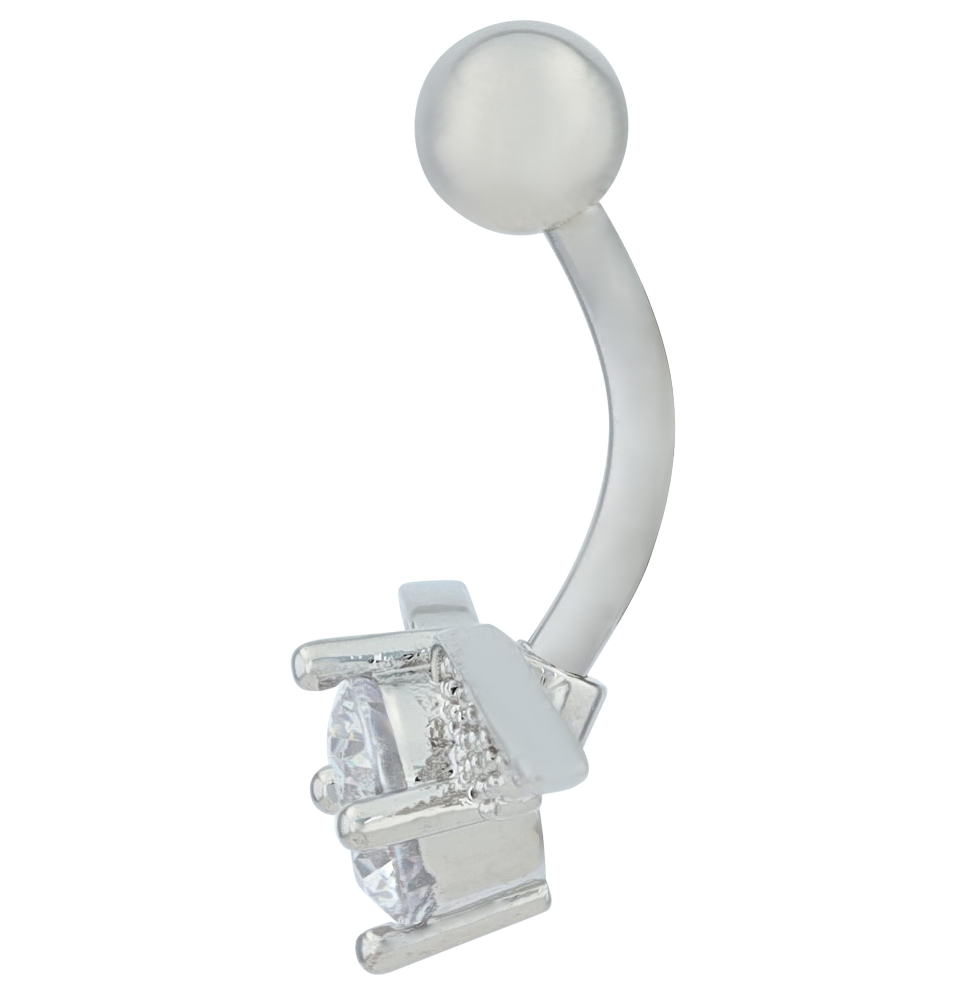 Productinformatie ""Heide" Edelstahl-Bronze Bauchnabelpiercing, Länge 11 mm/ Stärke 1,8 mm, Walflosse, Zirkonia, silberfarben"