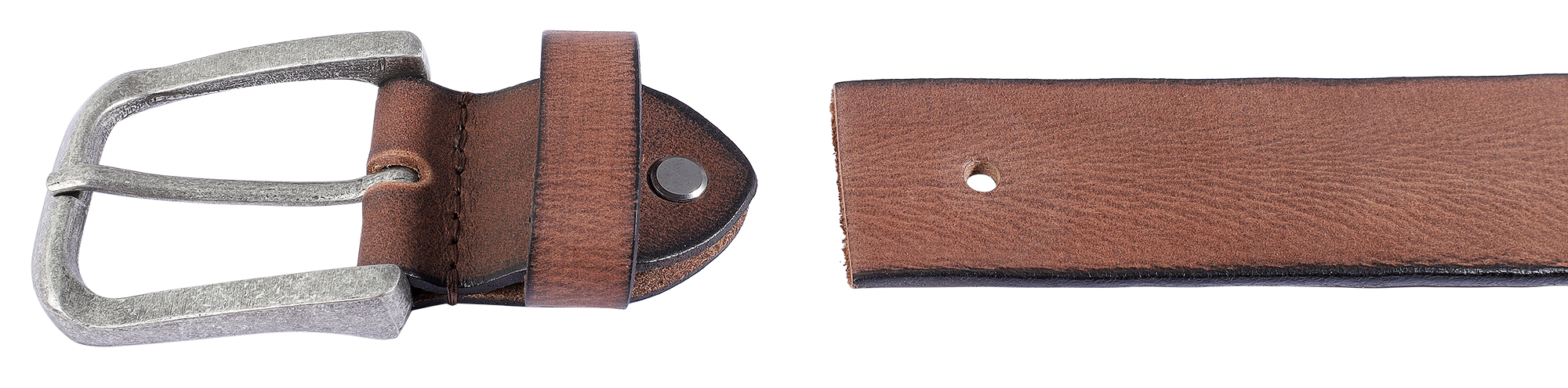 Gefertigt aus echtem Büffelleder entwickelt der Gürtel mit der Zeit eine individuelle Patina, die seine Hochwertigkeit unterstreicht.