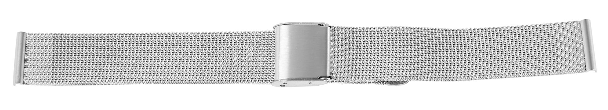 Das Ersatz-Milanaiseband wurde aus silberfarbenen Metallldrähten in ein besonders bewegliches und robustes Gewebe geflochten. Dies verleiht dem Armband sein markantes und wieder erkennbares Aussehen. Durch die feine Meshstruktur strahlt das Milanaiseband eine Note von schlichter Eleganz aus. Dank des Metallgeflechtes ist dieses Armband besonders Luft durchlässig, was das Tragen bei warmen Temperaturen angenehm macht. Das Band hat eine Anstoßbreite von 18 mm, eine Materialstärke von 1,5 mm und eine Gesamtlänge von 16,5 cm.
