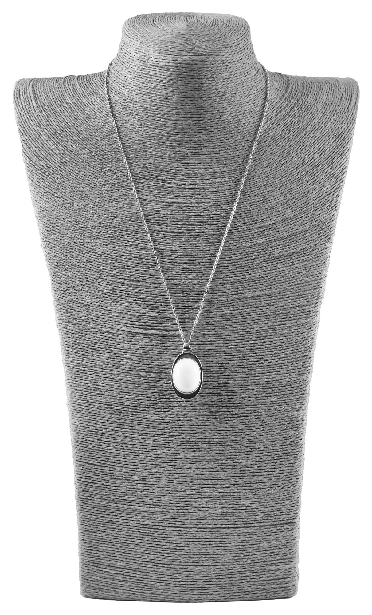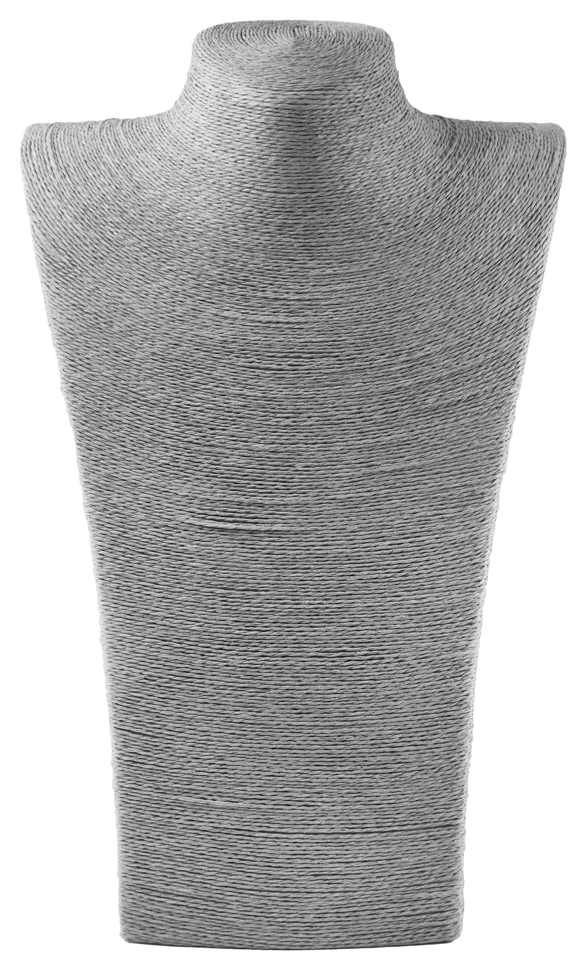 Der Schmuckhalter in schlichter Büstenform wurde aus Bastfaser hergestellt, diese Fasern sorgen für einen hochwertigen und dekorativen Look. Die Büste ist grau und eignet sich hervorragend zur Präsentation von Schmuckstücken. Ob auf der Ladentheke, im Schaufenster oder Ausstellungsraum, die Büste macht überall eine gute Figur. Die Maße des Aufstellers ergeben sich aus einer Länge von 36 cm, einer Breite von 23 cm und einer Stärke von 7 cm.
