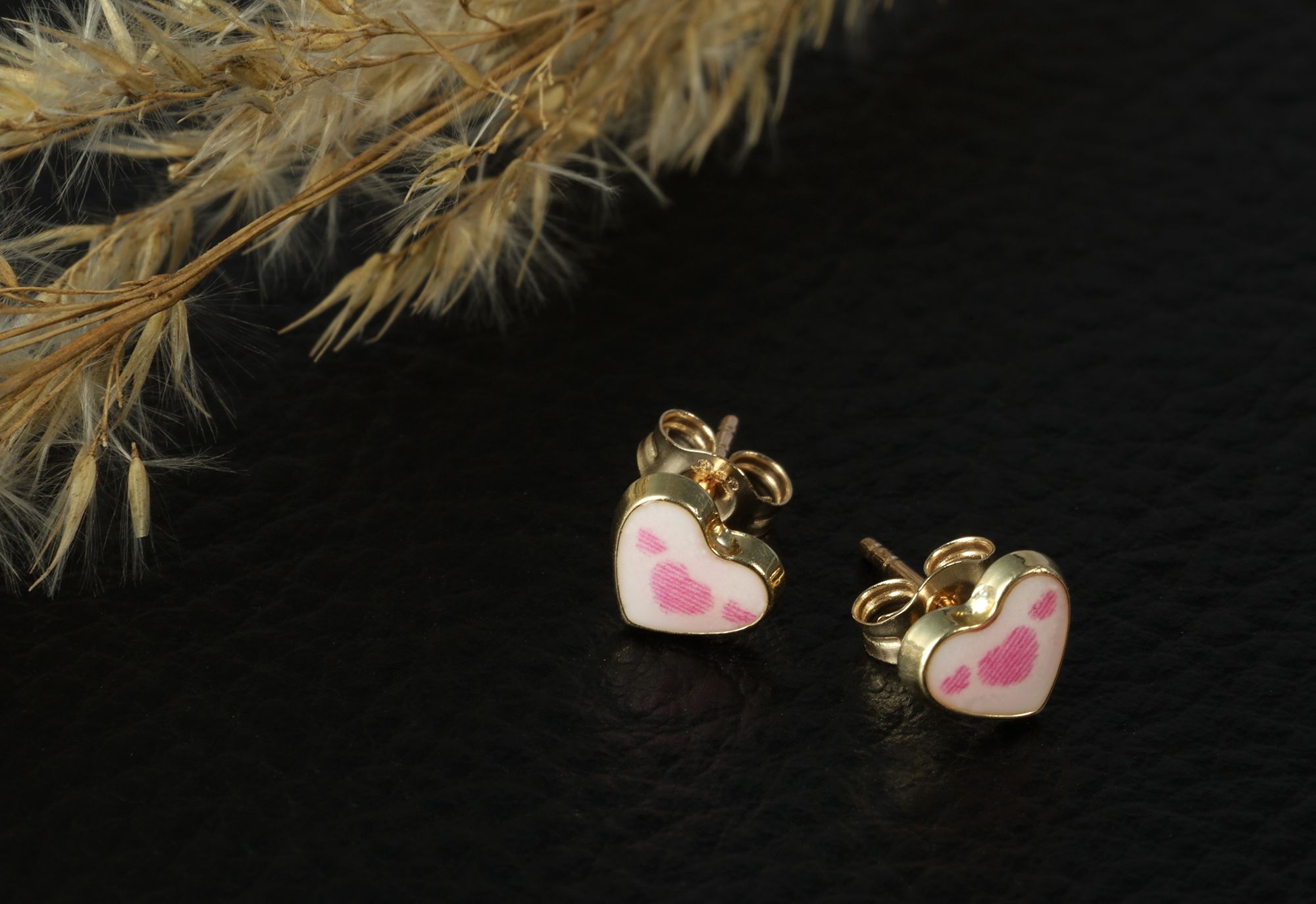 Productinformatie "333/- Gold "Hila" Ohrstecker, Herz mit "Emaille", Gelbgold, 8 Karat, Kinder"