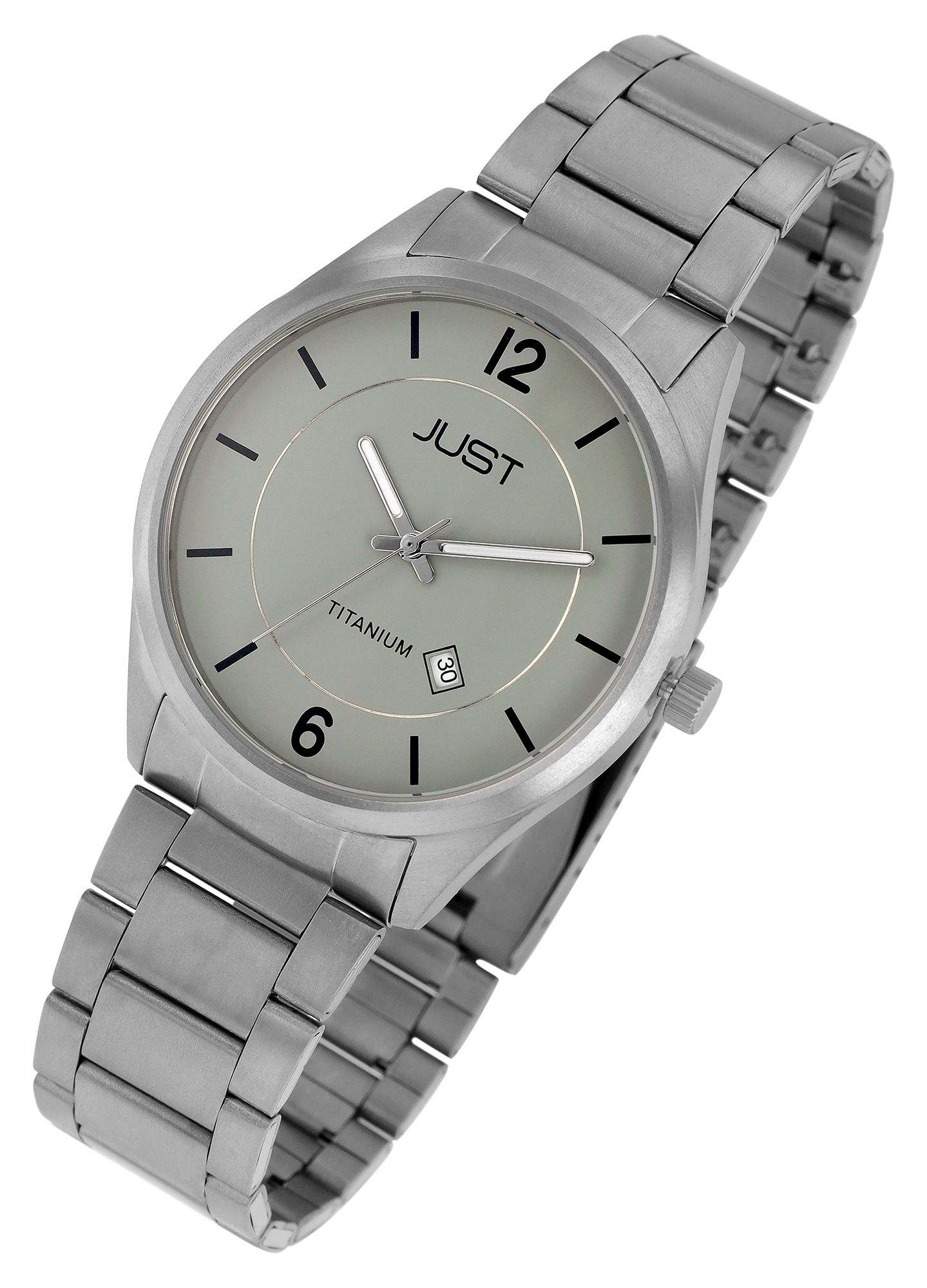 Productinformatie "Just Herrenuhr mit Gliederarmband, Titan, 5 ATM, graues ZB"