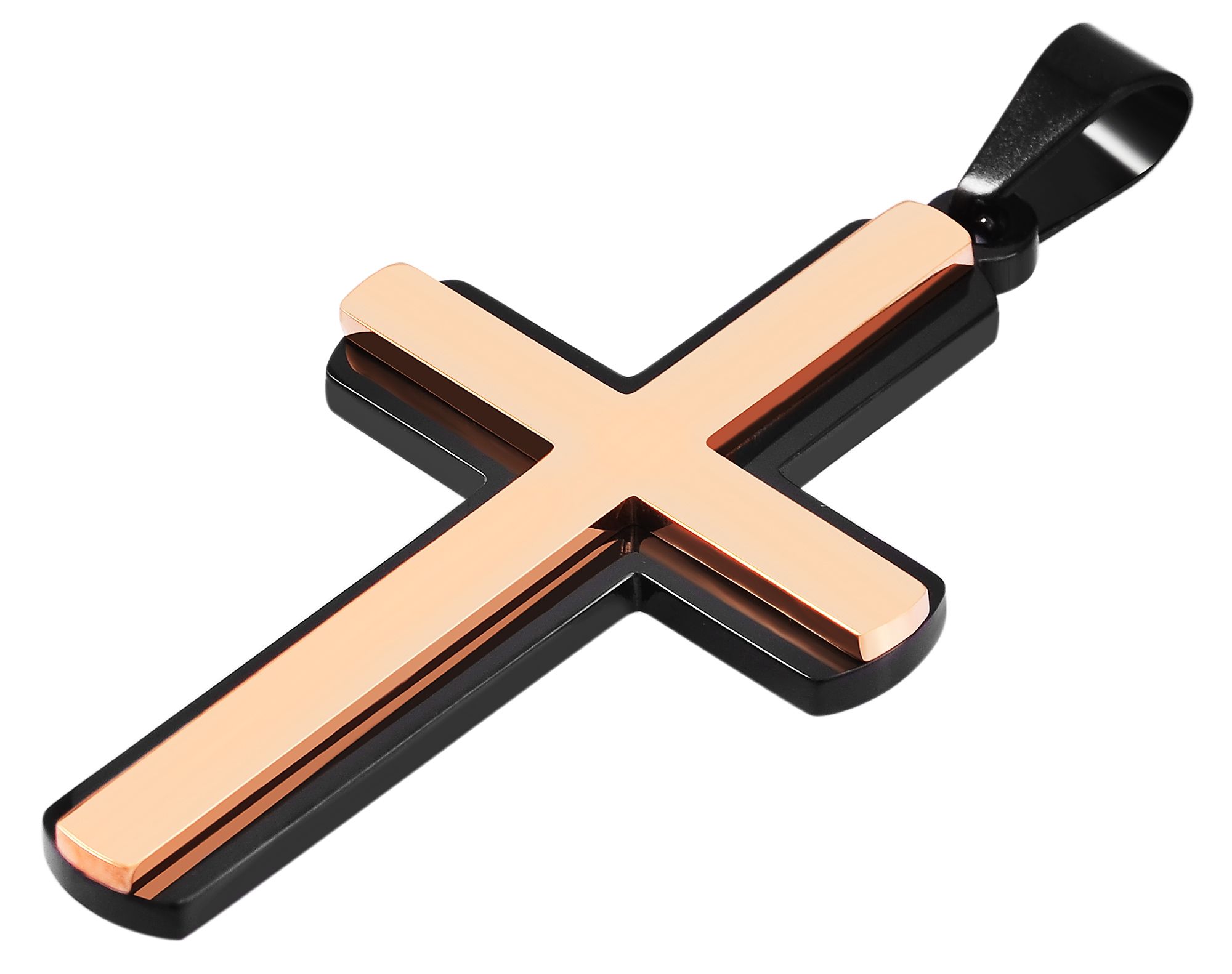 Productinformatie "Akzent Kreuzanhänger aus Edelstahl, schwarz/roségoldfarben"