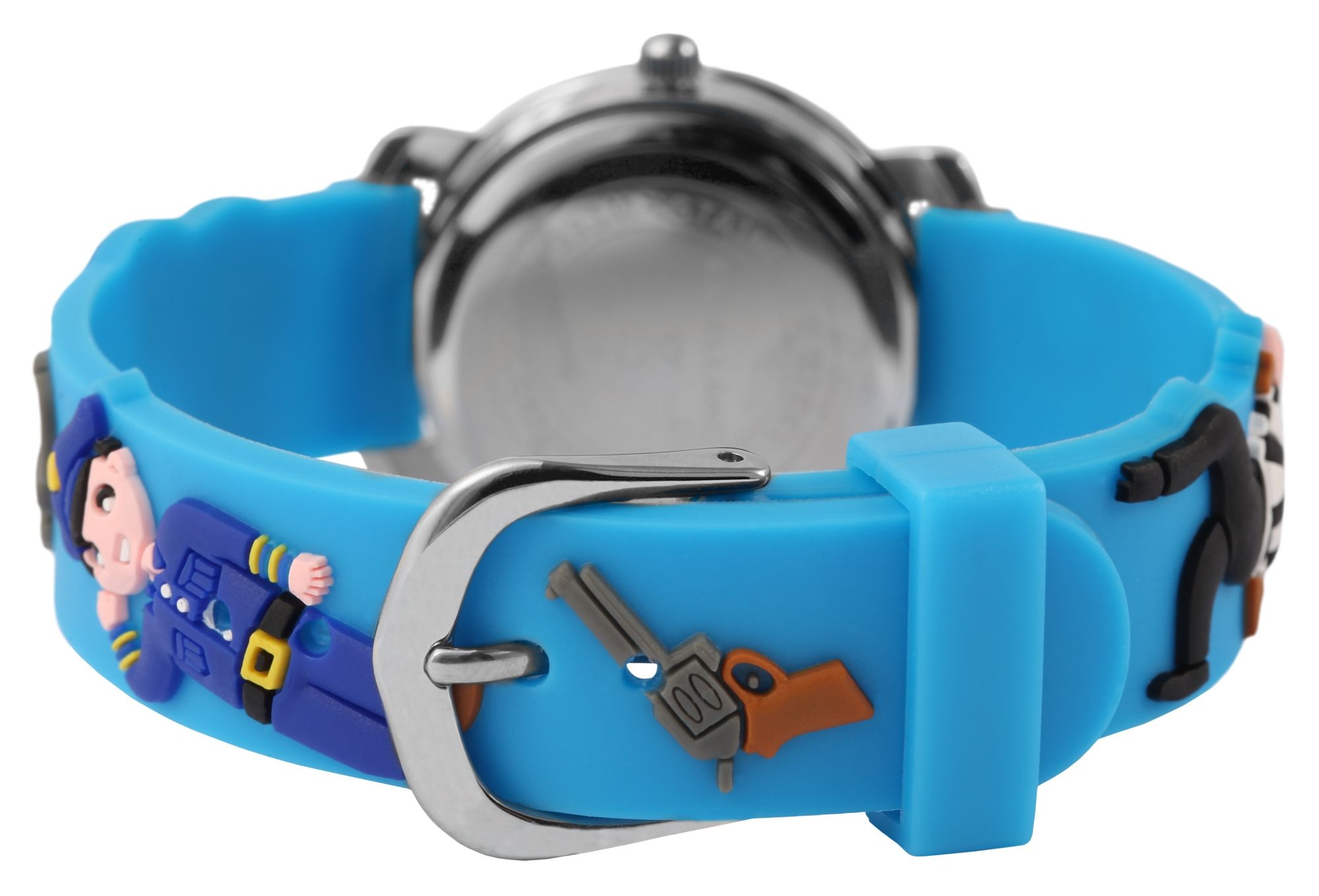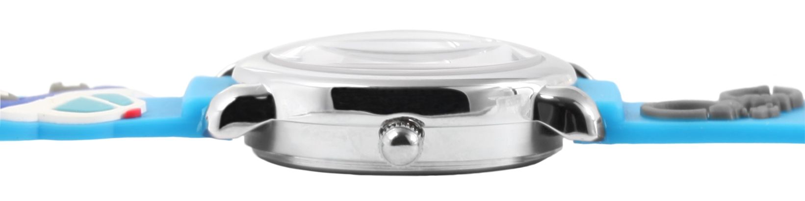 Het analoge 3-hands kinderpolshorloge van het merk Excellanc heeft een hoogwaardig PC21 kwartsuurwerk. De siliconen band is 14 mm breed bij de lug en kan worden geopend en gesloten met een gesp. De totale lengte van het horloge is 20 cm. De metalen kast met mineraalglas heeft een diameter van 27 mm en een kasthoogte van 10 mm. De achterkant van de kast is gemaakt van roestvrij staal. De rubberen band is versierd met verschillende politiemotieven en is comfortabel om te dragen. De wijzerplaat is wit en bedrukt met zwarte cijfers. De uurwijzer is geel en de minutenwijzer is rood. De speciale secondewijzer bestaat uit een fijne transparante plaat met een kleine zwarte politiehandboei erop gedrukt.