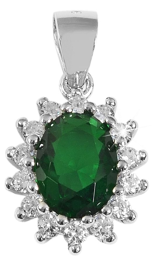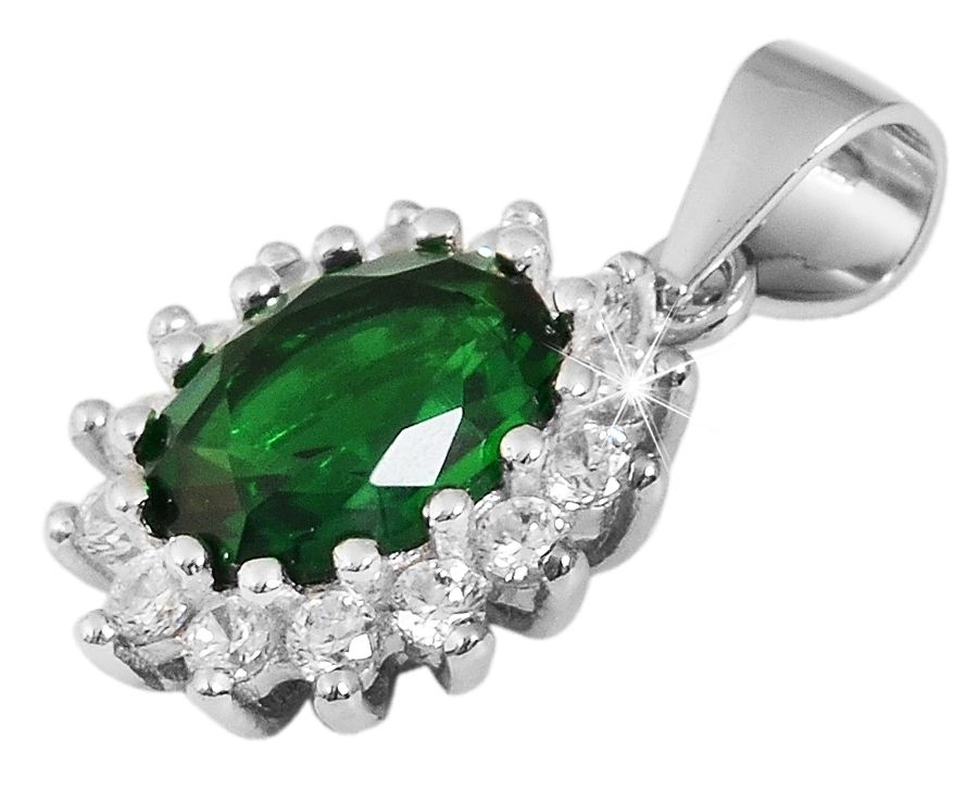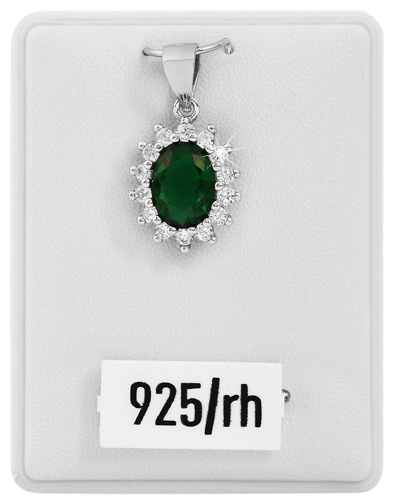 Productinformatie ""Divna", Echtsilber Entourage Anhänger, Zirkoniabesatz, rhodinert, grün/weiß, 14 x 11 mm"