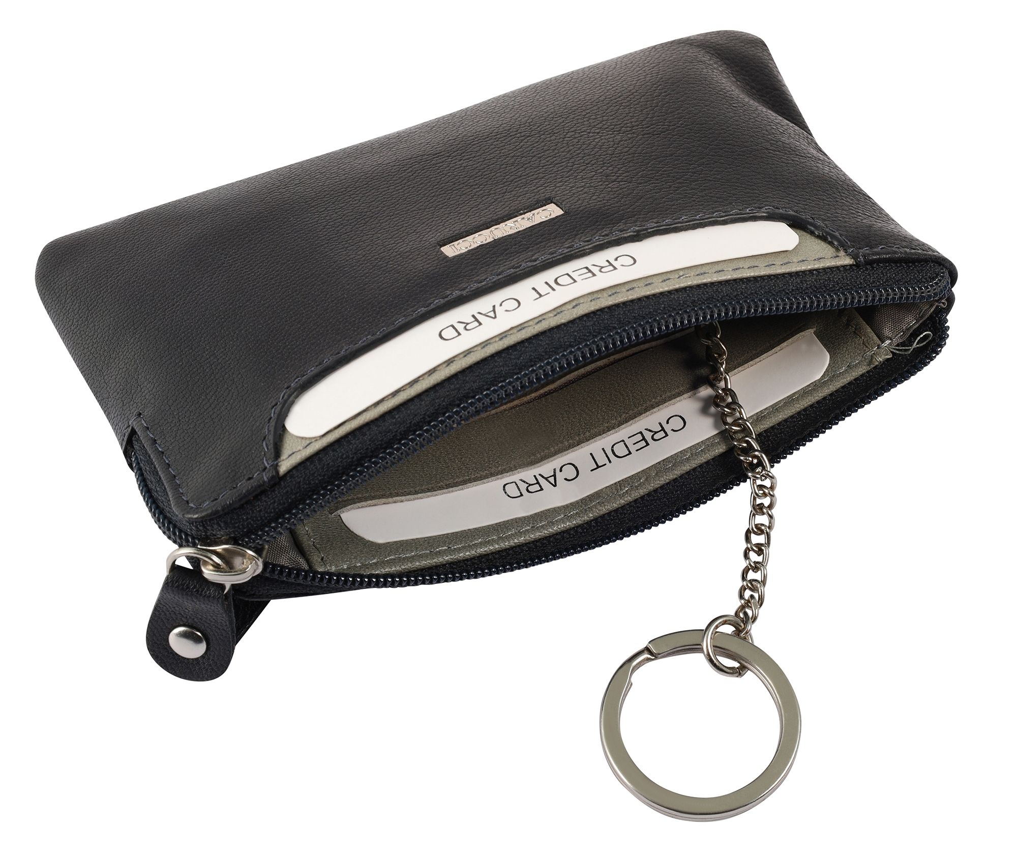 Productinformatie "Carucci Echt Leder Schlüsselbeutel, RFID, dunkelblau/ grau"