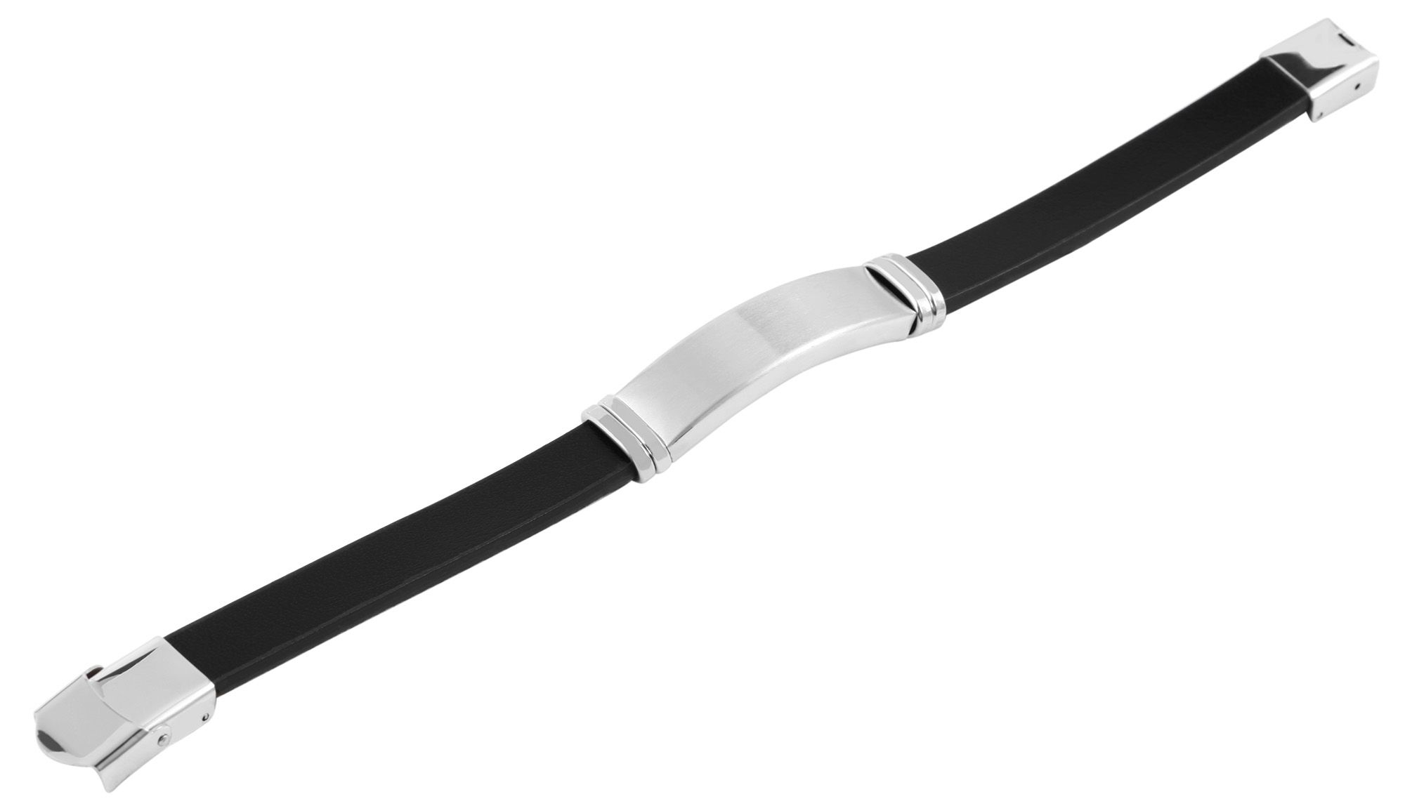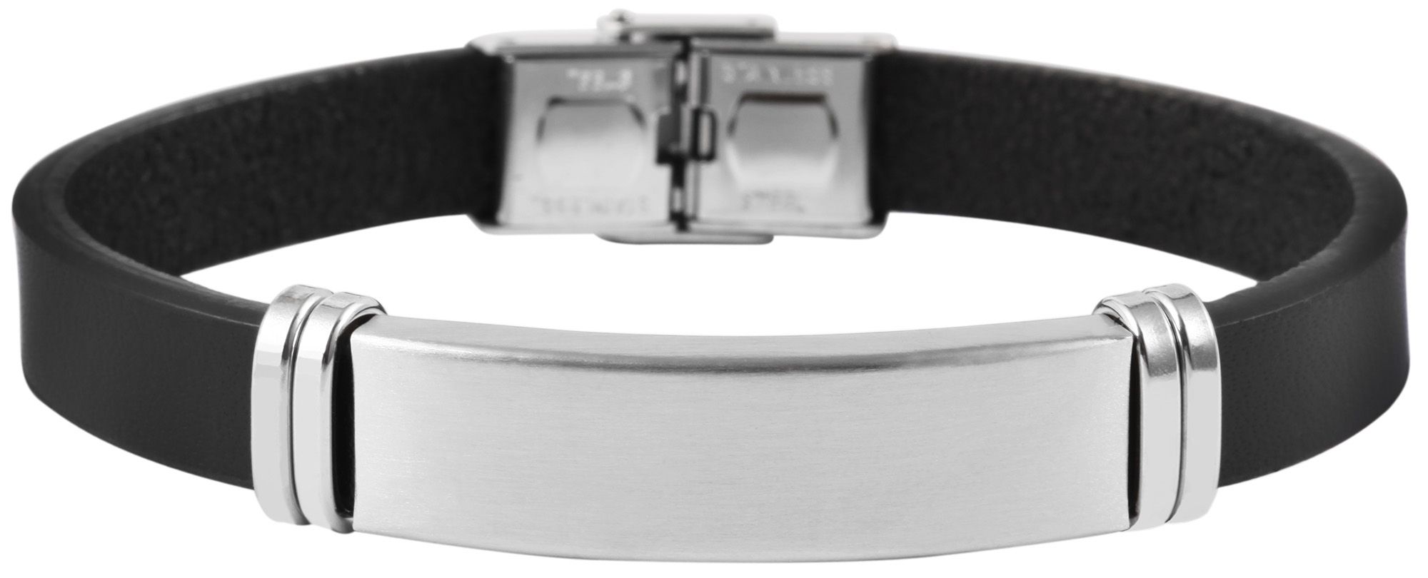 Productinformatie ""Lino", Akzent Armband, Echtleder, Edelstahlgravurplatte, schwarz/silberfarben, 21 cm"