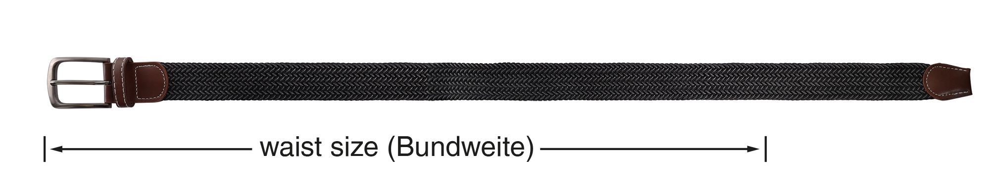 Unsere Textilgürtel in Grau und Schwarz mit dem dezenten Flechtmuster, erhalten durch die braunen Lederimitat Applikationen an beiden Enden ein besonderes Highlight. Die hochwertige Dornschließe aus Metall sorgt nicht nur für einen sicheren Halt, sondern lässt sich auch genau an der Stelle schließen, die Ihnen am bequemsten ist. Unser Flechtgürtel ist in verschiedenen Längenoptionen erhältlich - 100 cm, 110 cm und 120 cm - und hat eine Breite von 3,2 cm sowie eine Stärke von 0,5 cm, um sicherzustellen, dass für jeden die passende Größe dabei ist.