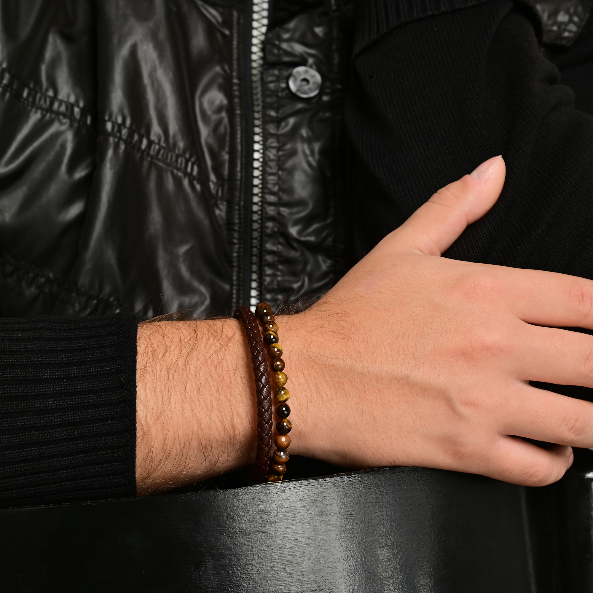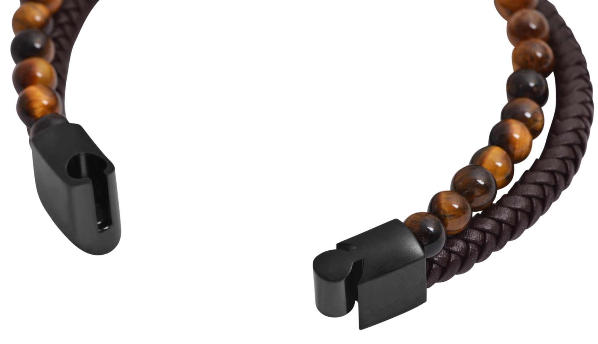 De Akzent armband bestaat uit een donkerbruin, gevlochten koord van echt leer en een rij natuurstenen. 30 kralen worden bij elkaar gehouden door een transparante nylon band. Omdat de kralen een natuurproduct zijn, is elke kraal uniek en heeft daarom verschillende kleureffecten. De armband kan gemakkelijk worden geopend en gesloten met een praktische magneetsluiting. De zwarte sluiting is gemaakt van roestvrij staal en IP-plated. De armband is verkrijgbaar in lengtes van 21 cm en 23 cm. De kralen en de leren armband zijn 6 mm dik. Dit bijzondere sieraad is perfect om cadeau te geven. Bijvoorbeeld als verjaardags- of kerstcadeau.