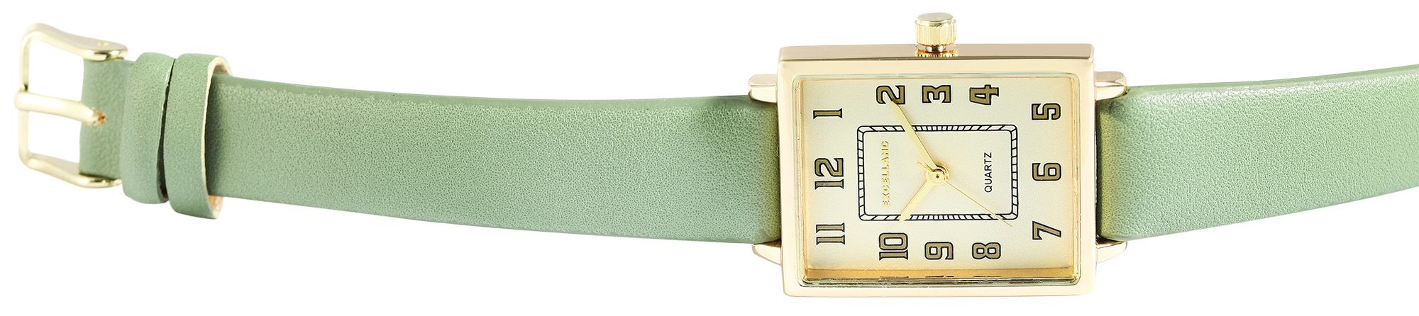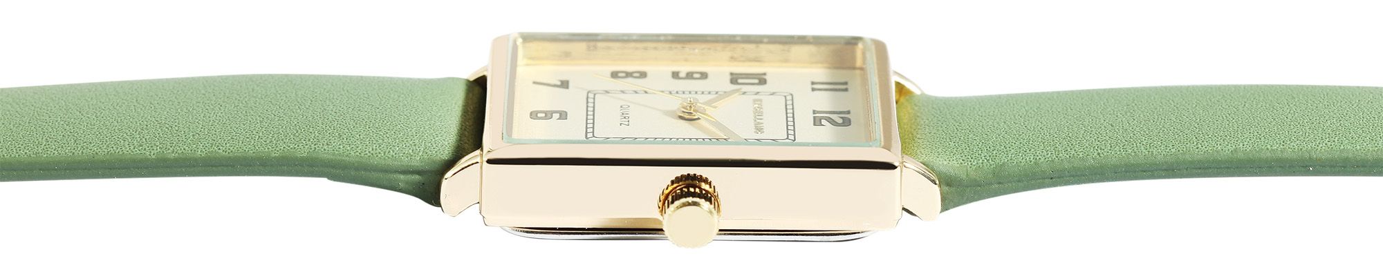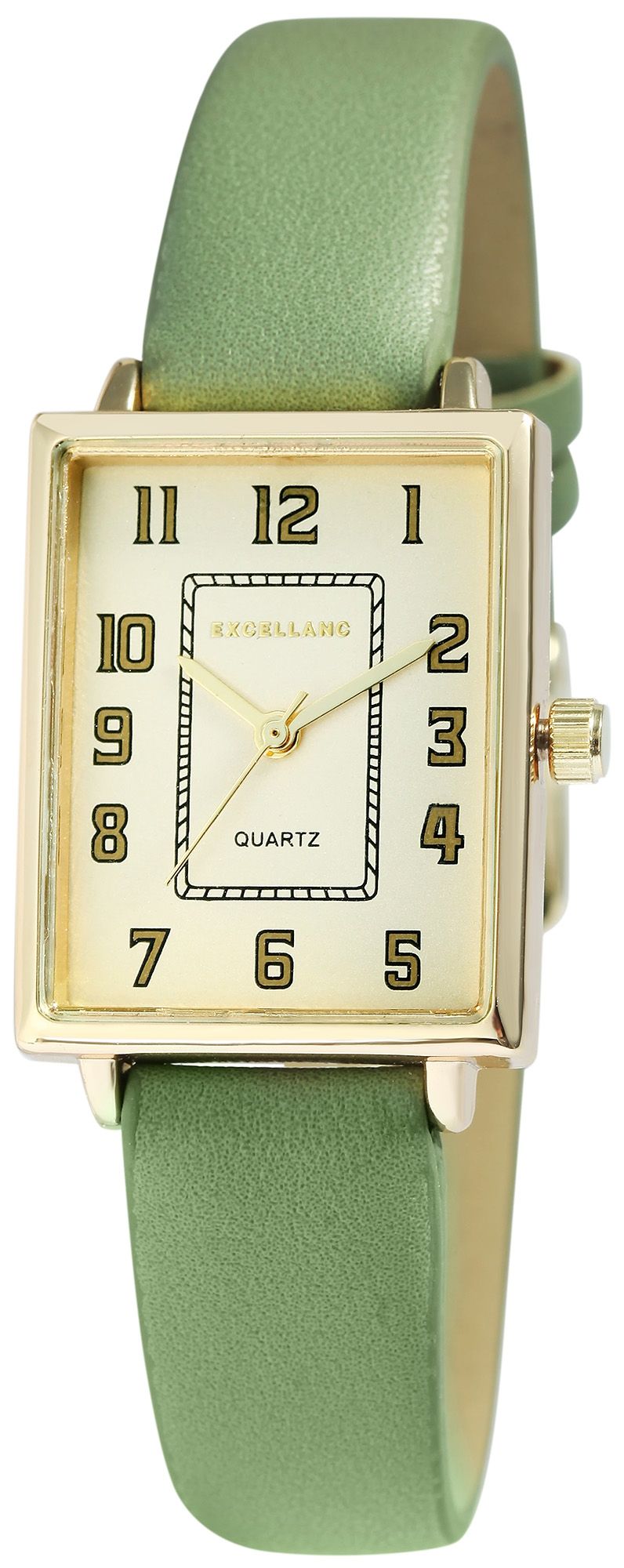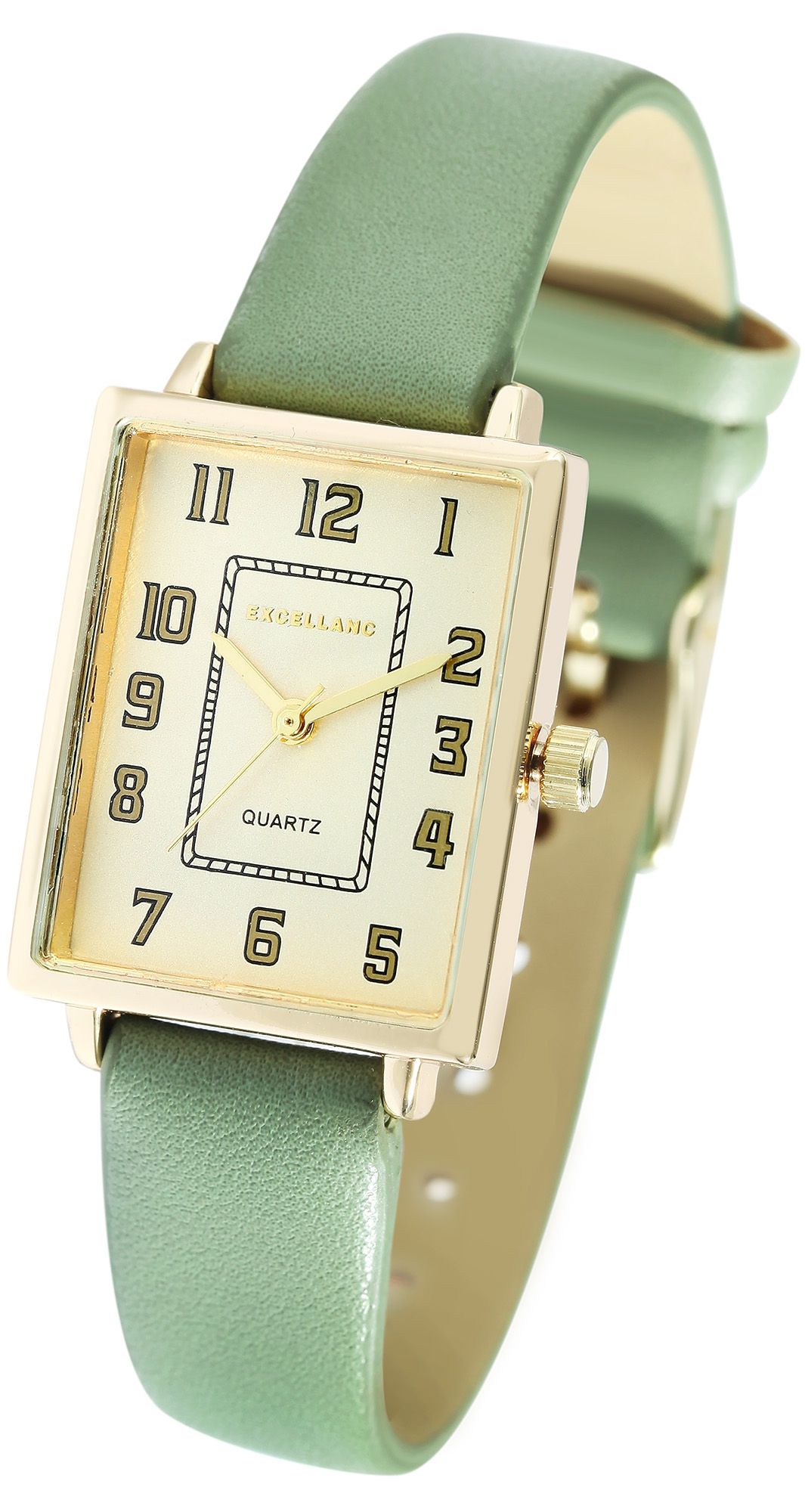 Productinformatie "Excellanc Damenuhr mit Lederimitationsarmband, grün/goldfarben"