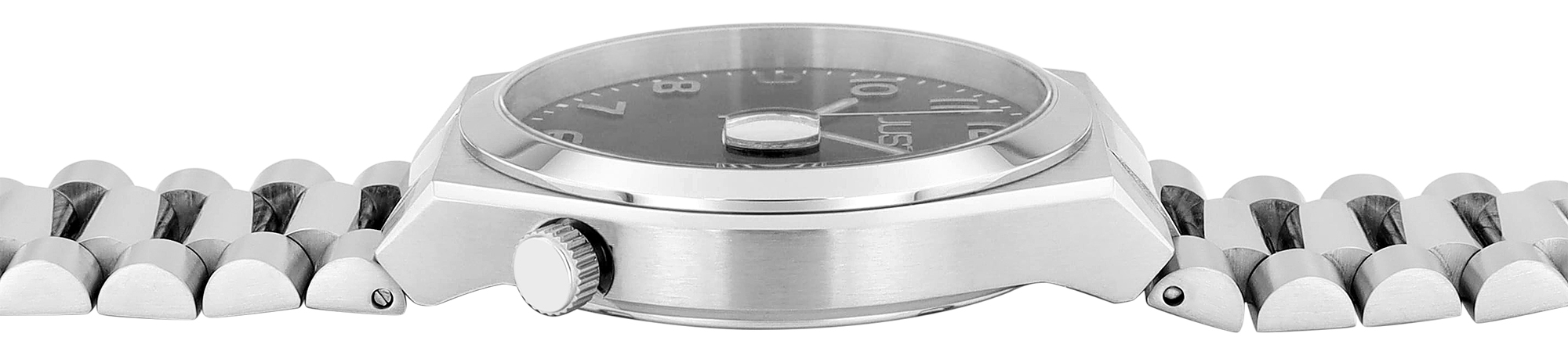 Diese Herrenuhr von Just lässt sich zu jeder Gelegenheit tragen, stilvoll komplettiert sie jedes Outfit von Anzug bis T-Shirt und wartet mit einem Präzisions-Quarzuhrwerk auf, das für punktgenaue Zeitanzeigen sorgt. Das breitgliedrige Armband mit einer Länge von 21 cm und einer Breite von 22 mmam Steg sowie der praktische Butterfly-Verschluss und der Gehäuseboden der Uhr sind vollständig aus hochwertigem, hypoallergenem Edelstahl gefertigt, welcher nicht nur äußerst hautverträglich ist, sondern auch die Langlebigkeit der eleganten Uhr garantiert.