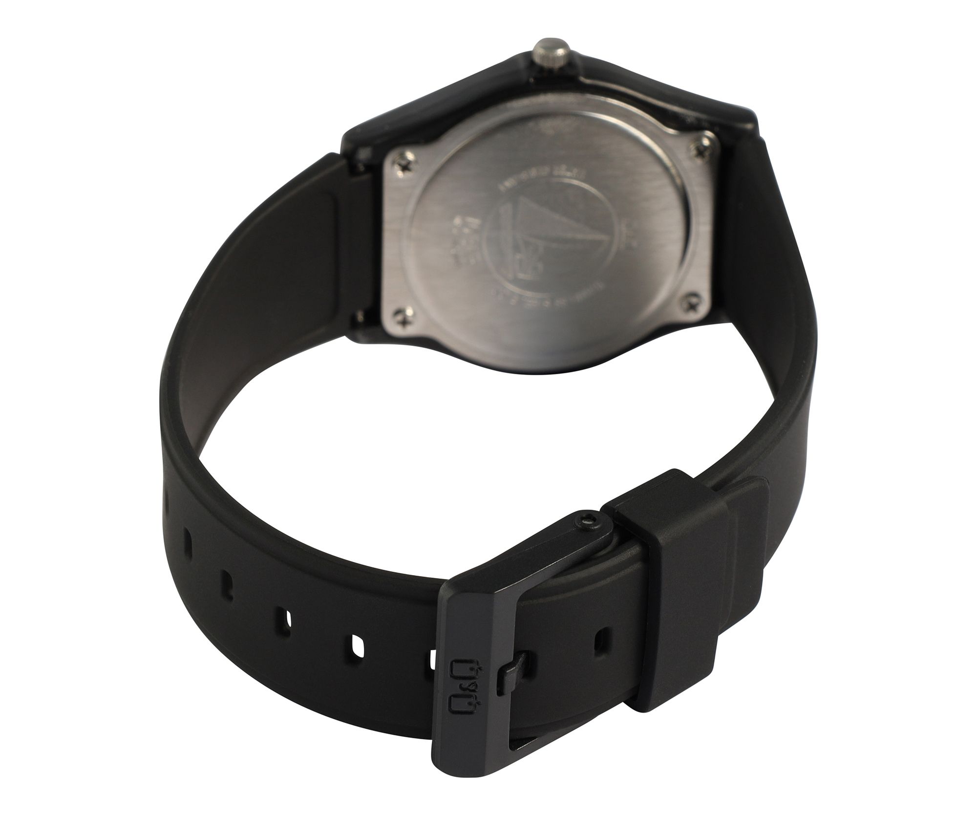 Diese Q&Q - by Citizen Watch Co. LTD Herrenuhr mit Silikonarmband und 10 ATM Wasserdichtigkeit ist nicht nur ein modisches Accessoire, sondern auch ein funktionaler Begleiter für den Alltag. Das besondere Highlight sind die indisch-arabischen Ziffern, die dieser Armbanduhr eine besondere Exklusivität verleihen und nicht nur eine kulturelle Note hinzufügen, sondern auch für eine klare Ablesbarkeit sorgen. Dazu trägt auch der ansprechende Kontrast vom weißen Zifferblatt zu den schwarzen Zeigern und Indizes bei.