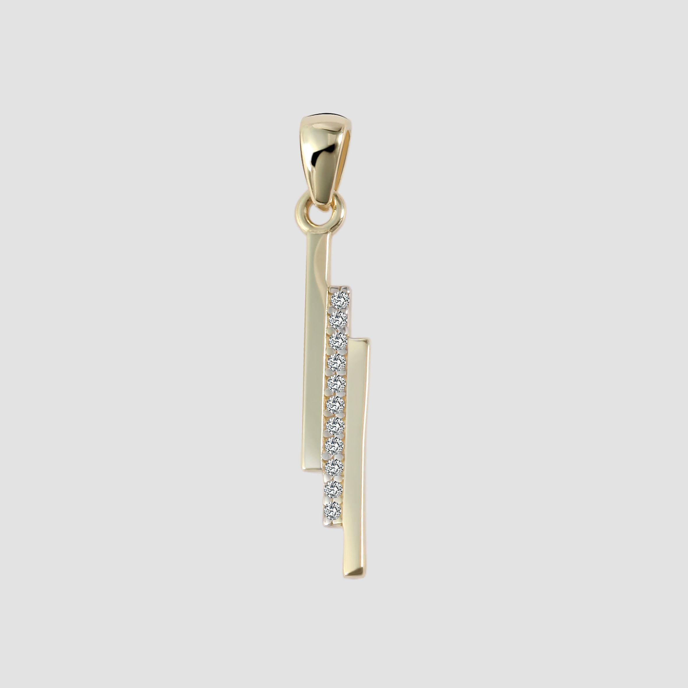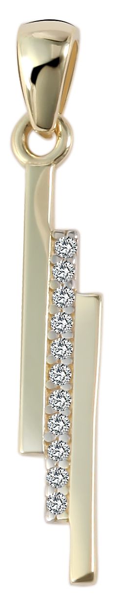 Der längliche Kettenanhänger wurde aus 333er Gold hergestellt. Der Anhänger ist sowohl in Gelbgold, als auch in Weißgold erhältlich und zusätzlich mit 11 funkelnden Zirkoniasteinen verziert. Der weiße Besatz bildet dabei einen ansprechenden Kontrast. Aufgrund einer ovalen Öse lässt sich dieser Anhänger beliebig an verschiedensten Ketten anbringen. Bitte beachten Sie dabei, dass die Halskette nicht im Lieferumfang enthalten ist. Rundum ist dieser Schmuckanhänger ein tolles und zeitloses Accessoire, was sich jedem Outfit anpasst. Die Maße ergeben sich aus einer Länge von 26 mm, einer Breite von 4 mm und einer Materialstärke von 1,5 mm.