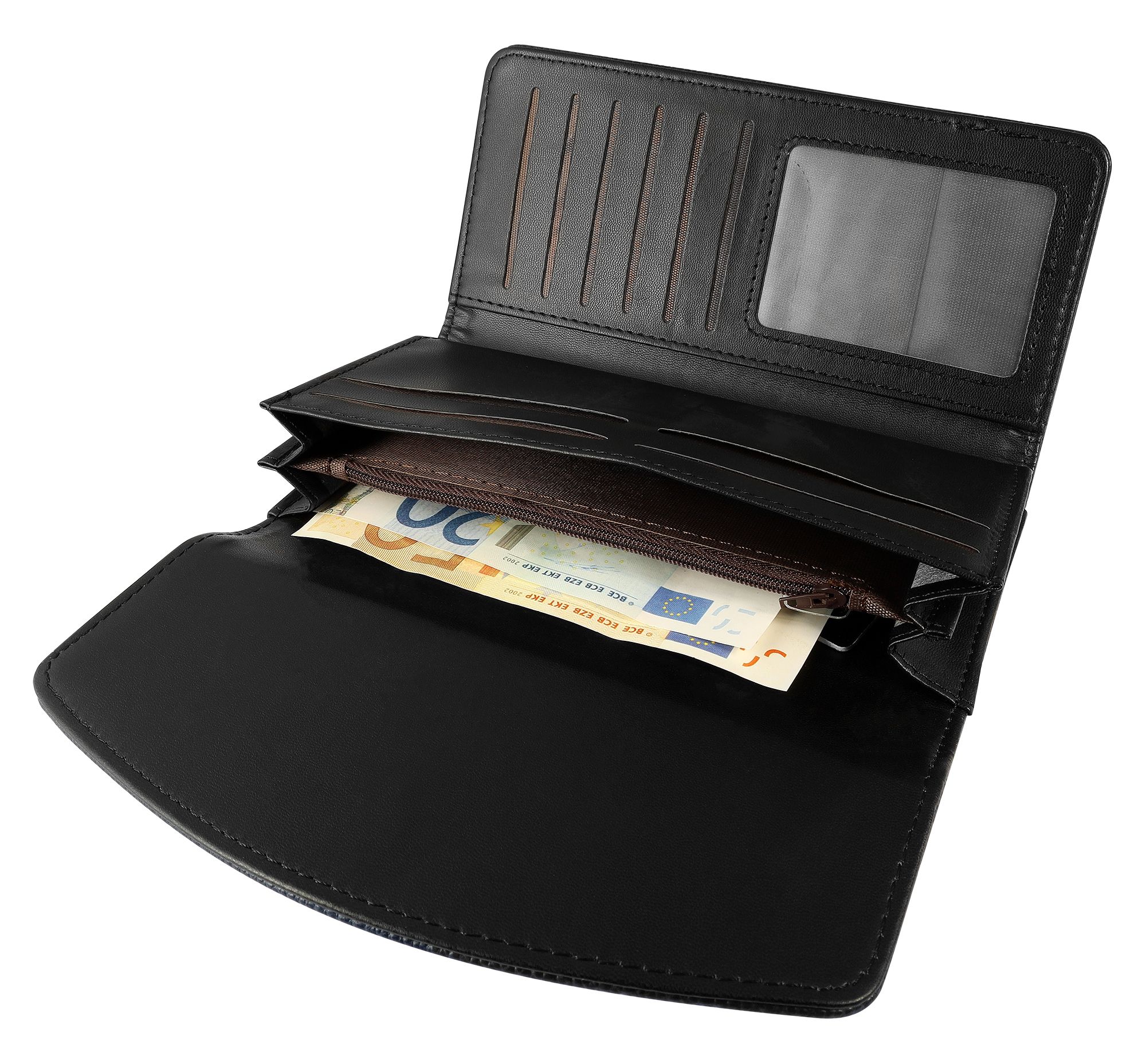 Entdecken Sie diese stilvolle Damengeldbörse im handlichen Querformat, die aus hochwertigem Lederimitat gefertigt ist und in verschiedenen Farben erhältlich ist. Mit einer Größe von 10 x 19 x 4 cm bietet sie eine ideale Balance aus kompakter Größe und reichlich Stauraum.