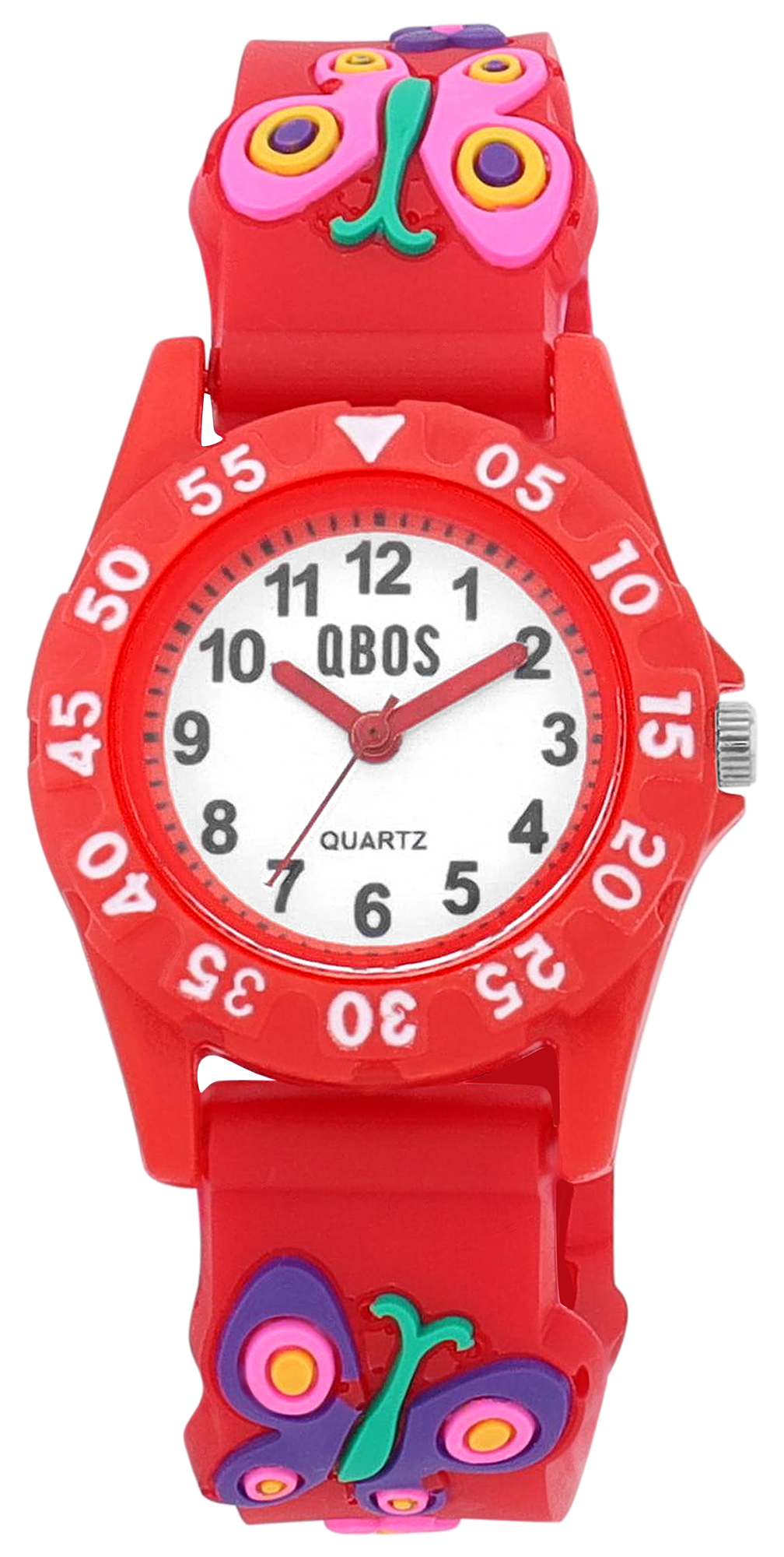 Voor kleine fashionista's en vrolijke ontdekkingsreizigers is hier een heel bijzondere tijdgenoot: het QBOS kinderhorloge! Het is niet alleen praktisch, maar ziet er ook betoverend uit met het schattige vlindermotief op de band. Je kunt kiezen uit drie favoriete looks: lichtroze, paars of rood!
