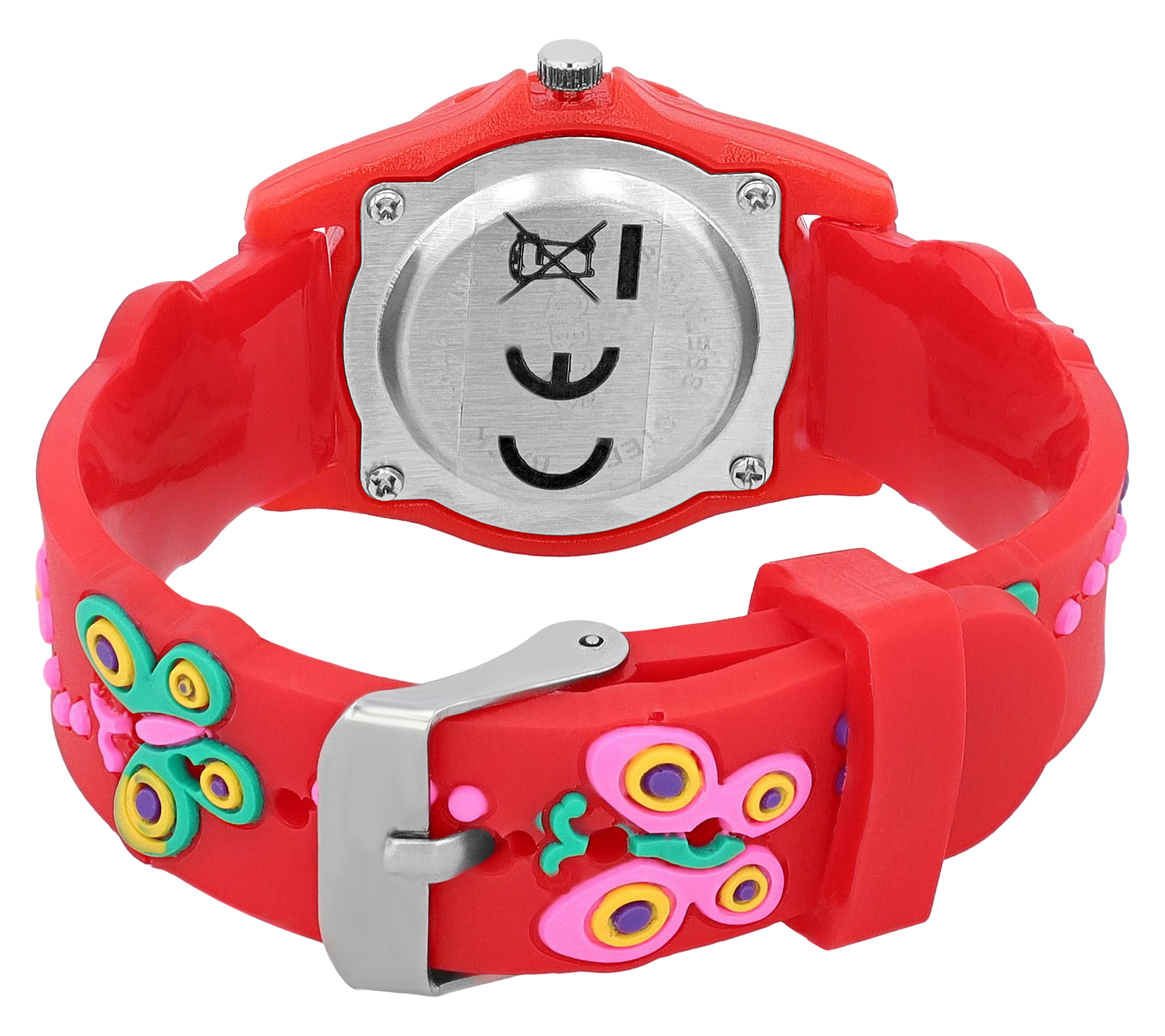 Qbos Kinderuhr mit Silikonband, bunt, Motiv Schmetterling, Ø 28 mm, rot