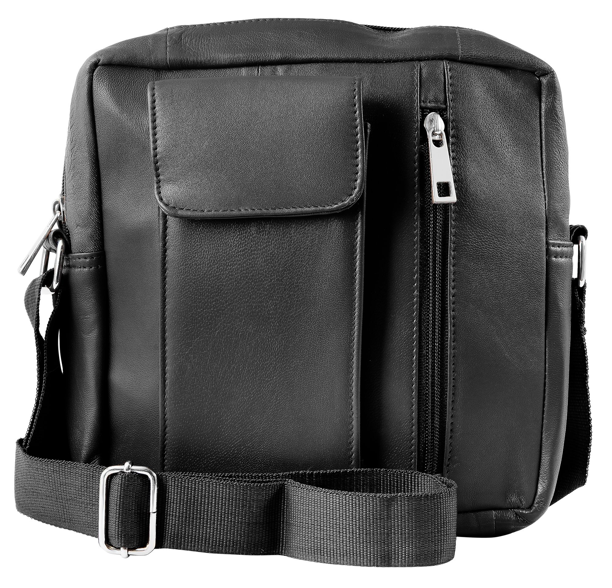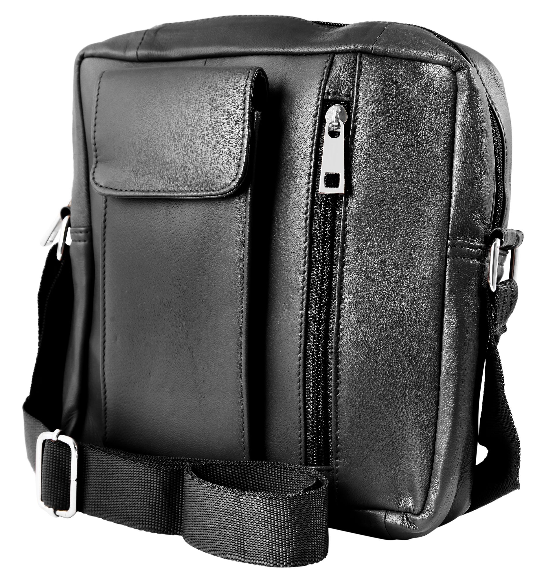 Productinformatie "Akzent Umhängetasche aus Echtleder, inkl. Handyfach geeignet für iPhone 15, schwarz"