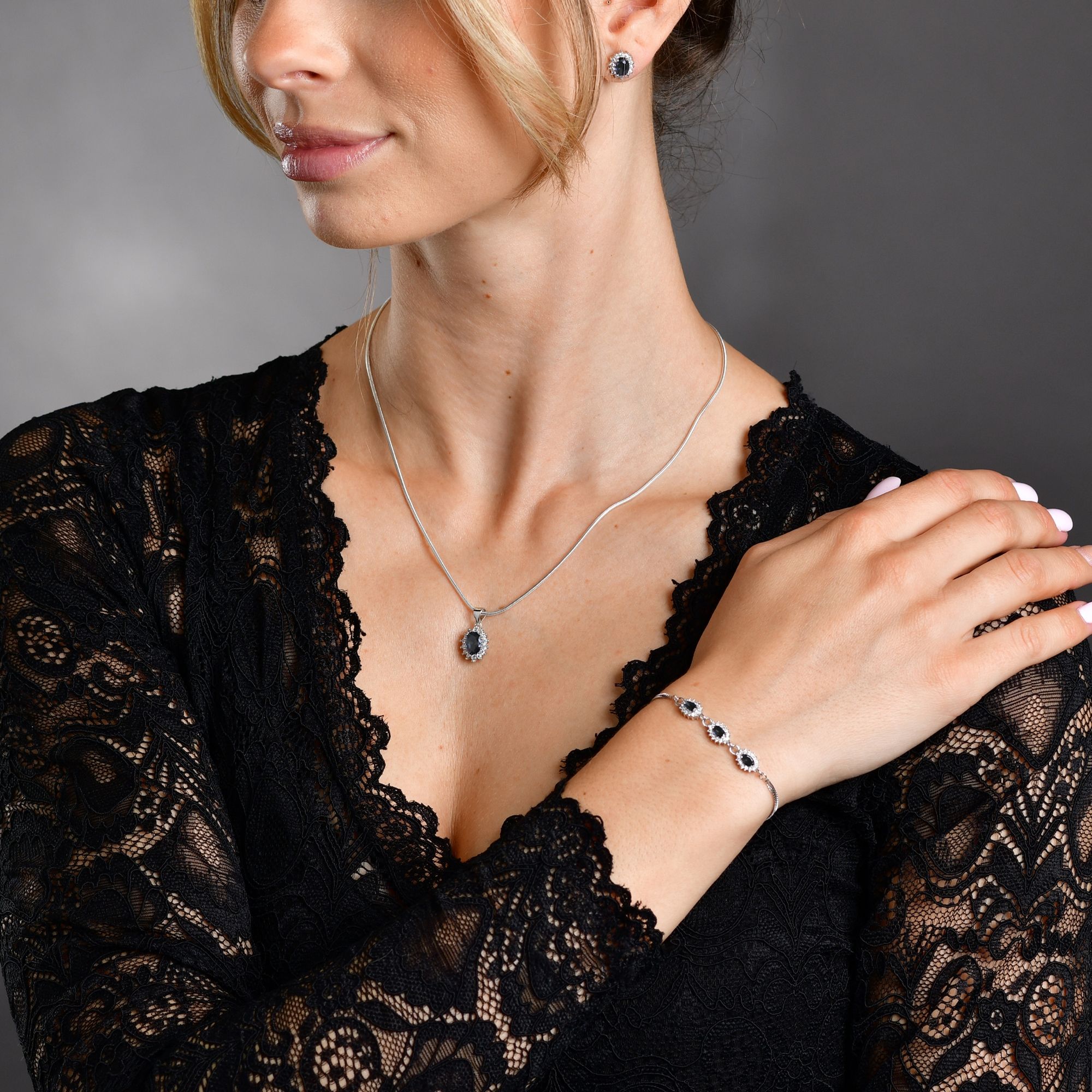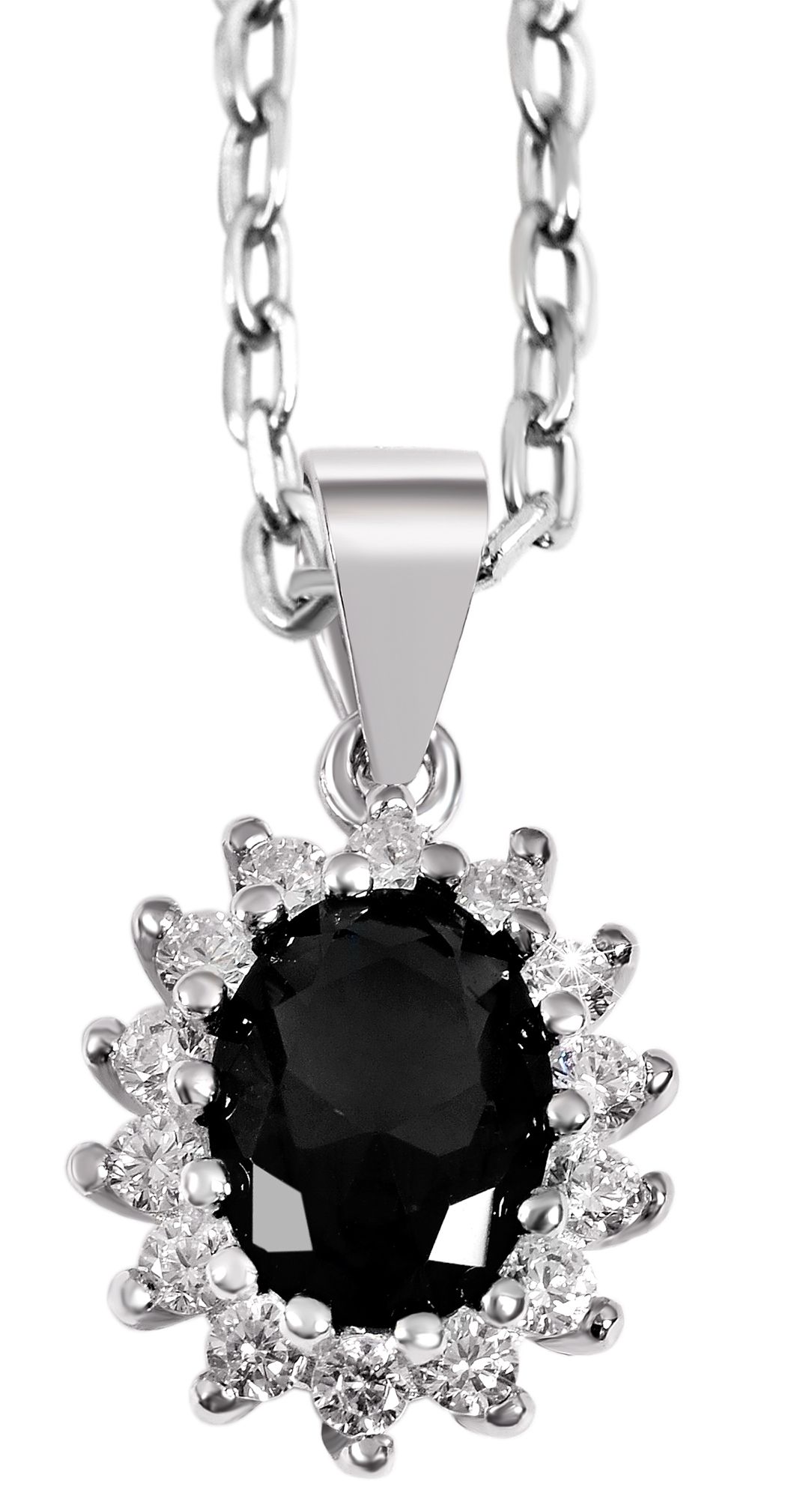 Dieser bezaubernde, klassische Entourage-Anhänger aus 925er Sterlingsilber, erstrahlt durch einen großen, ovalen, farbigen Mittelstein, um den 14 weitere kleine, runde, weiße Zirkoniasteine in Krappenfassung positioniert wurden. Eine Rhodium-Beschichtung lässt das Material besonders hell strahlen und schützt das Silber vor dem Anlaufen. Die Kombination aus unterschiedlich großen Zirkoniasteinen macht den Anhänger zu einem eleganten Accessoires.
