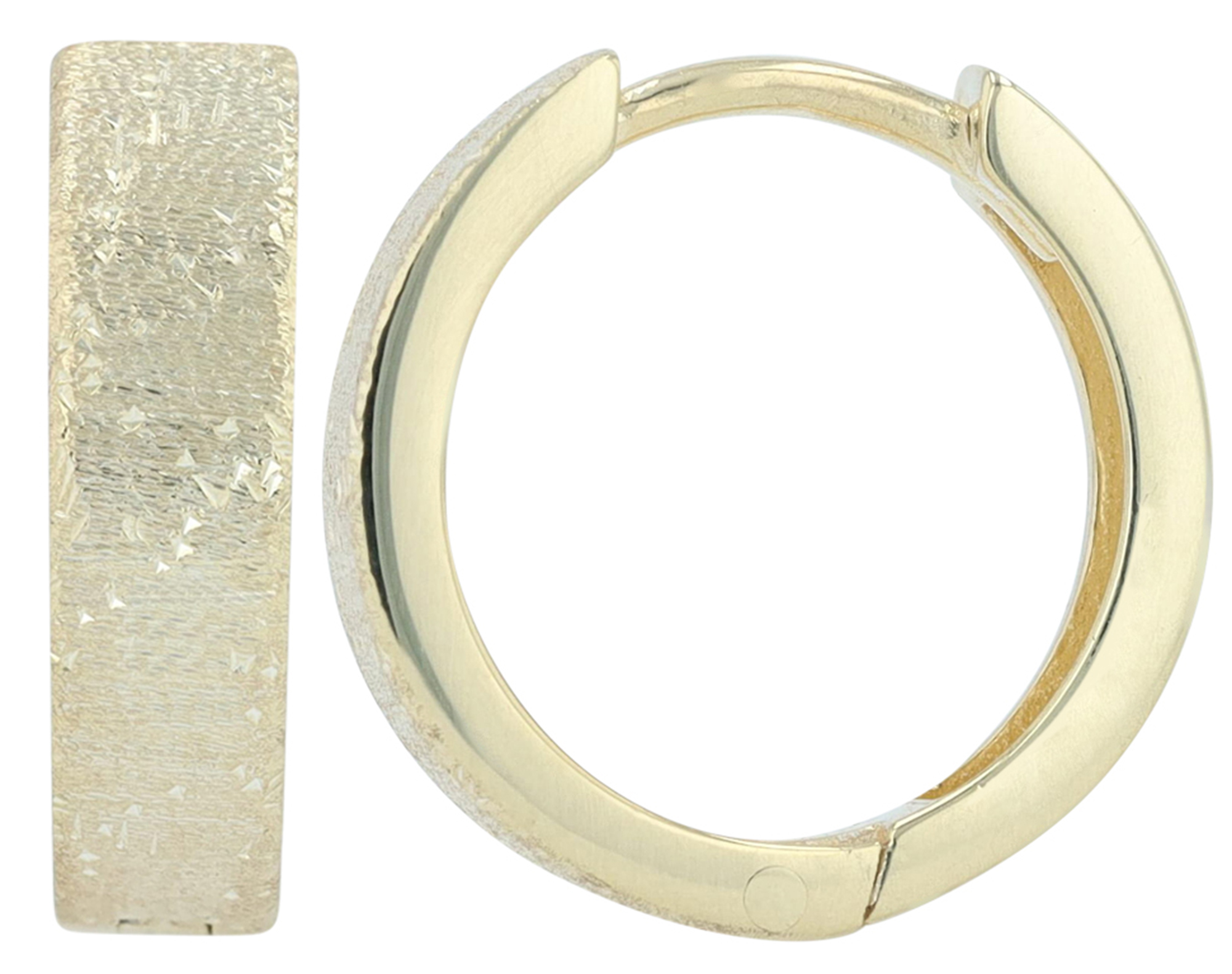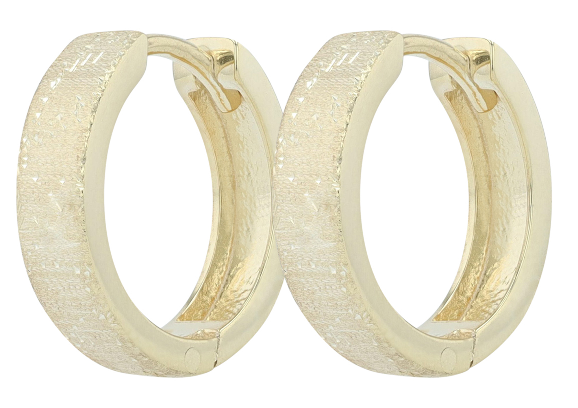 Das Oberflächenfinish auf der Vorderseite, ein Diamantschliff, macht diese Creole zu einer Besonderheit und einem eleganten Accessoire.