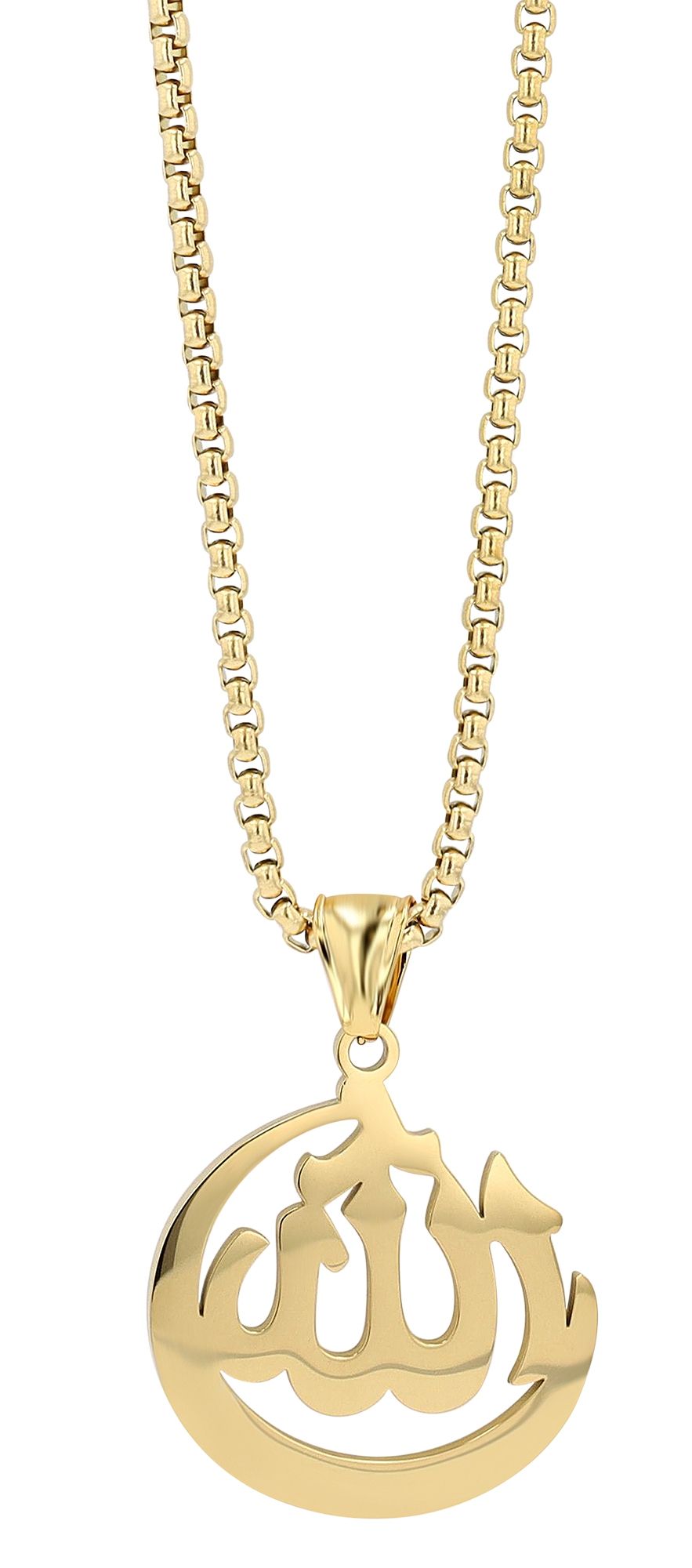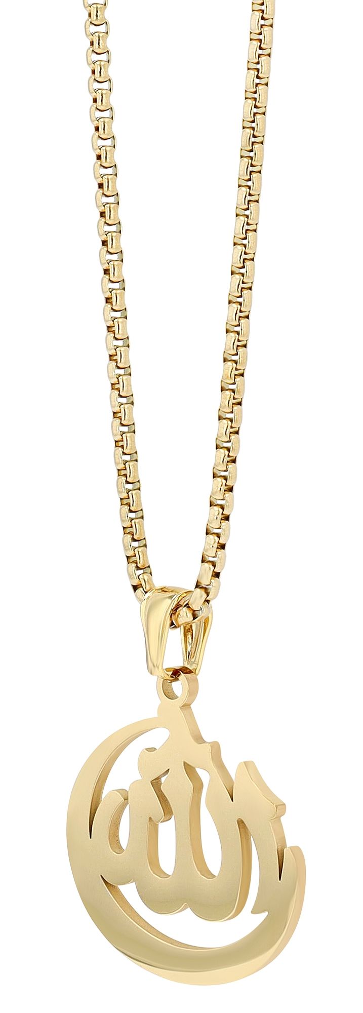 Productinformatie "Akzent Edelstahlkette mit Anhänger in arabischer Schrift, goldfarbig"