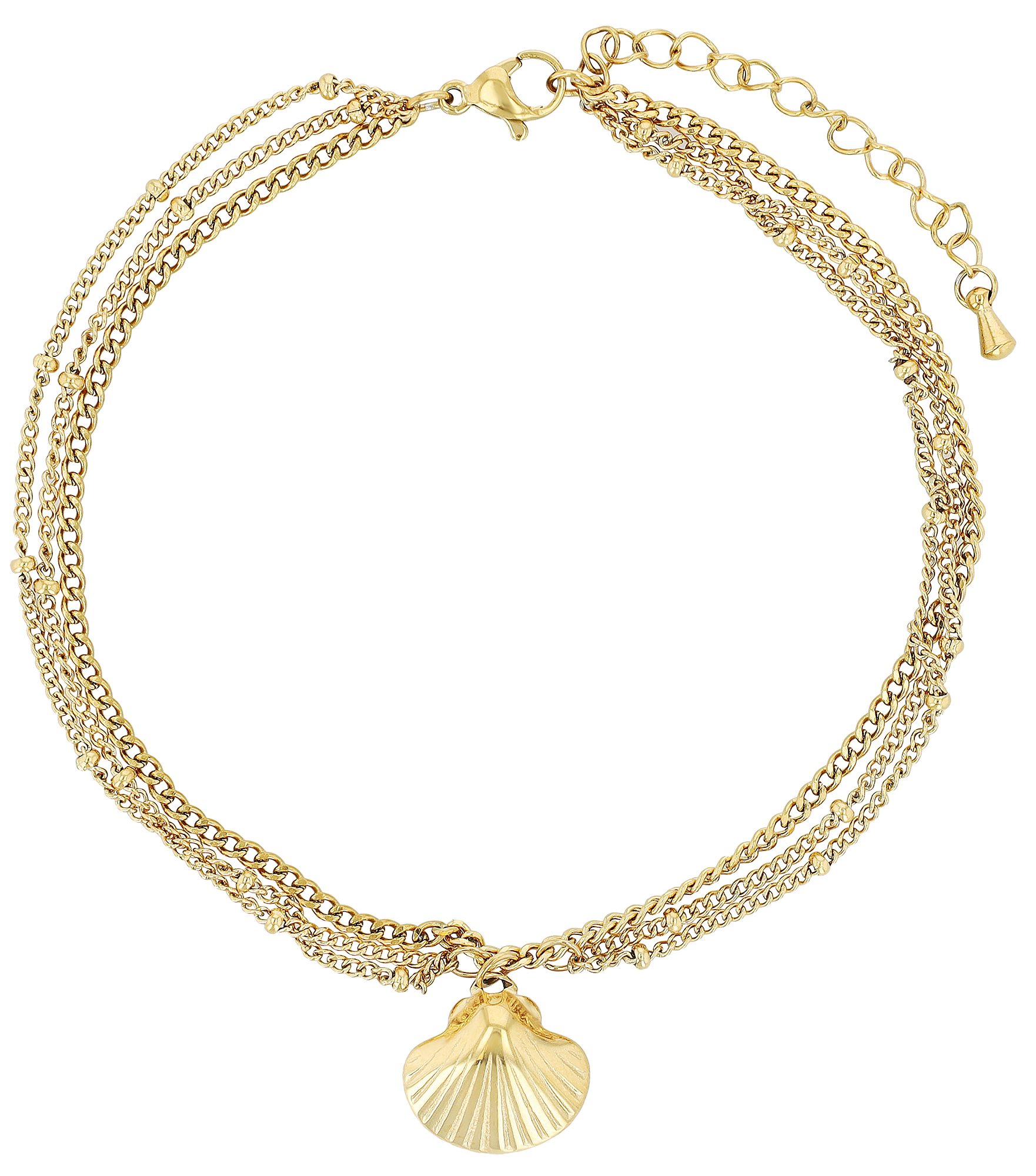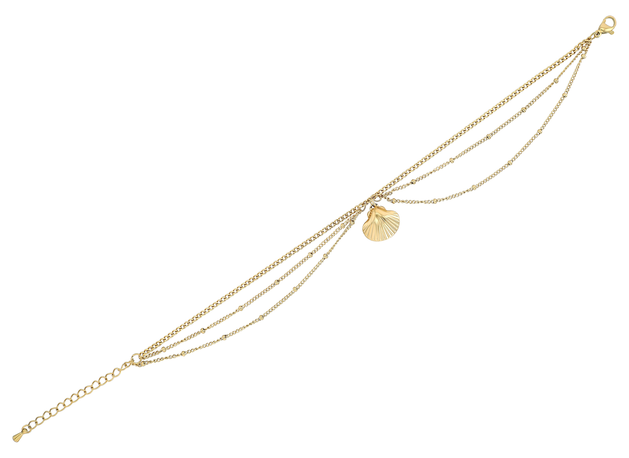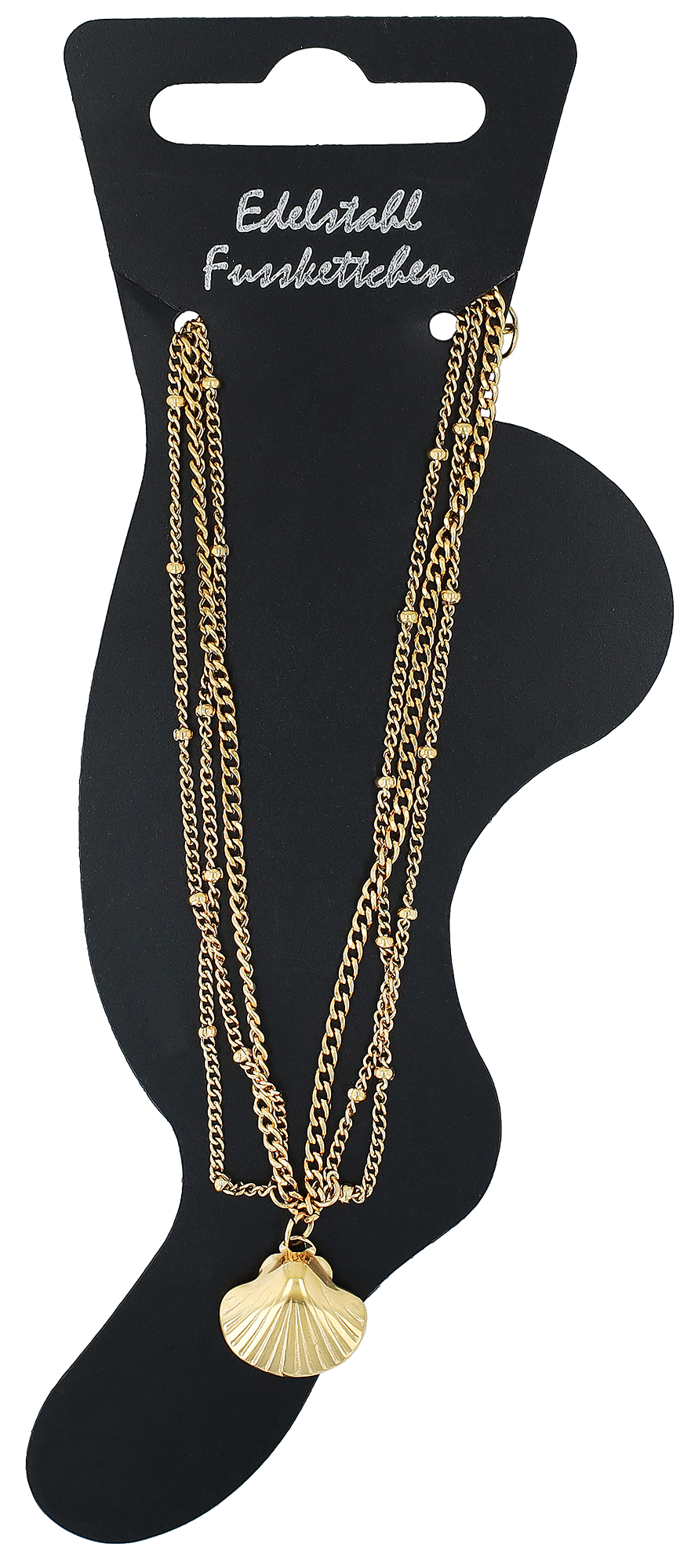 Productinformatie ""Demi" Fußkette Muschel im Layering Look, Edelstahl, goldfarben"
