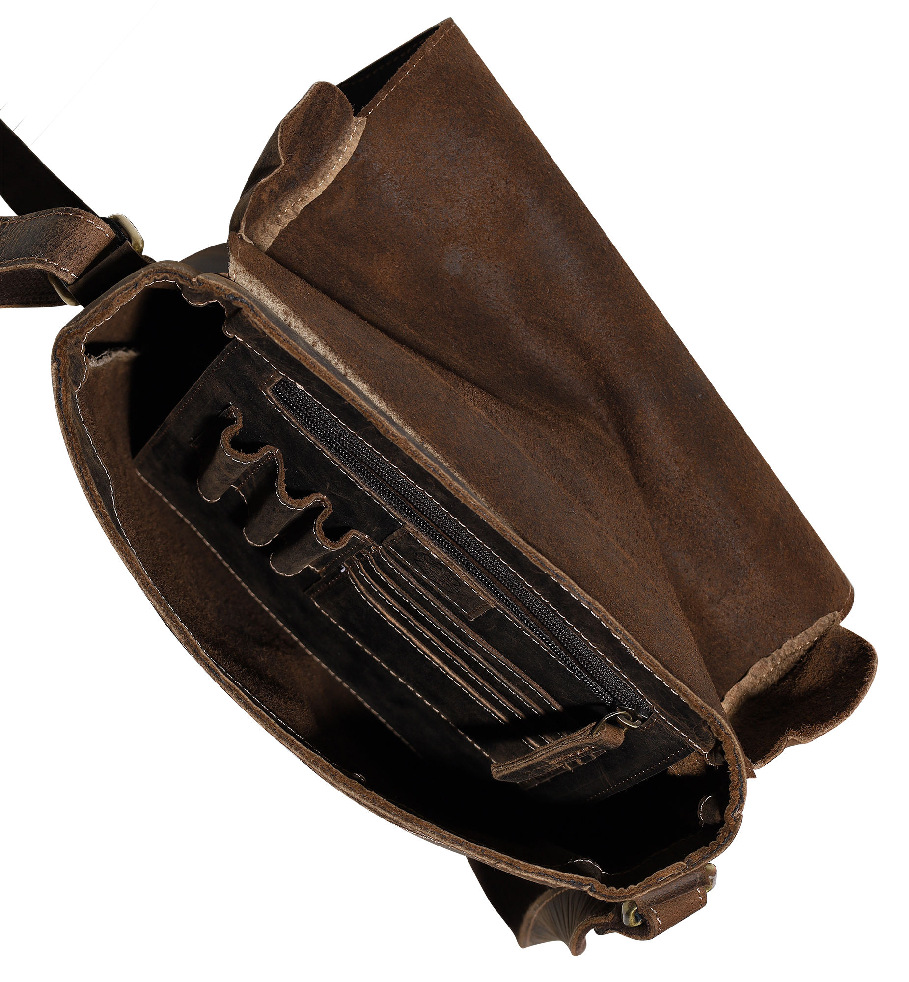 - Echt Leder (Vintage Look) in dunkelbraun, jede Tasche ein Unikat