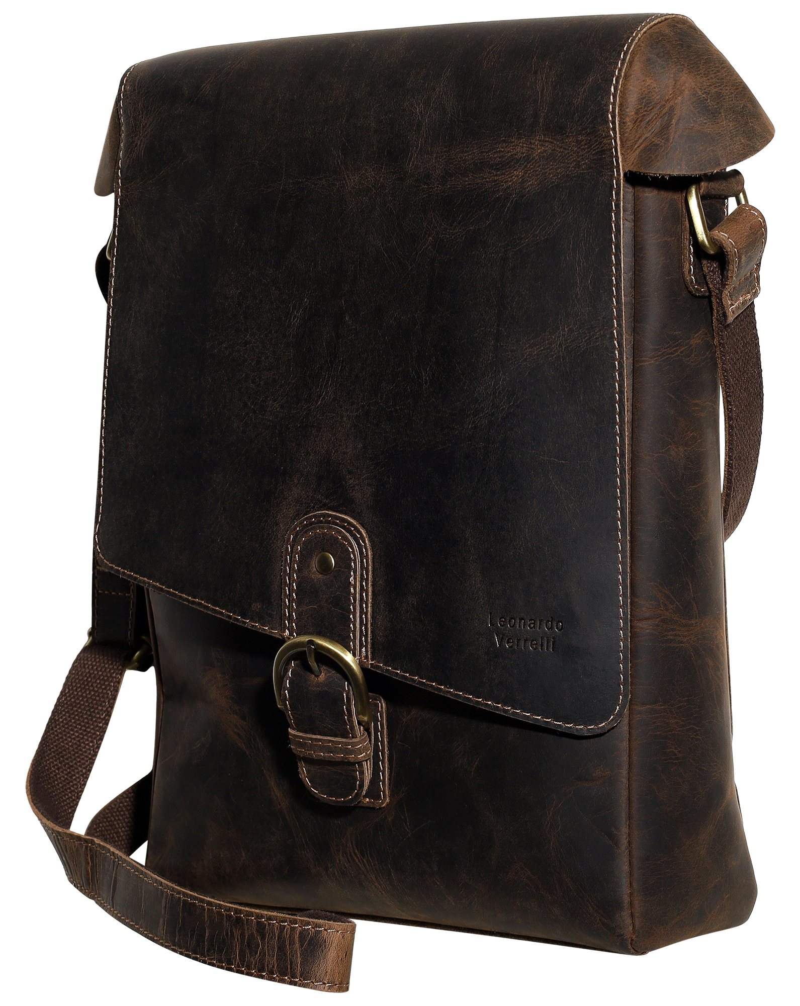 Productinformatie "Leonardo Verrelli Messenger Bag aus Echtleder im Vintage-Look, dunkelbraun"