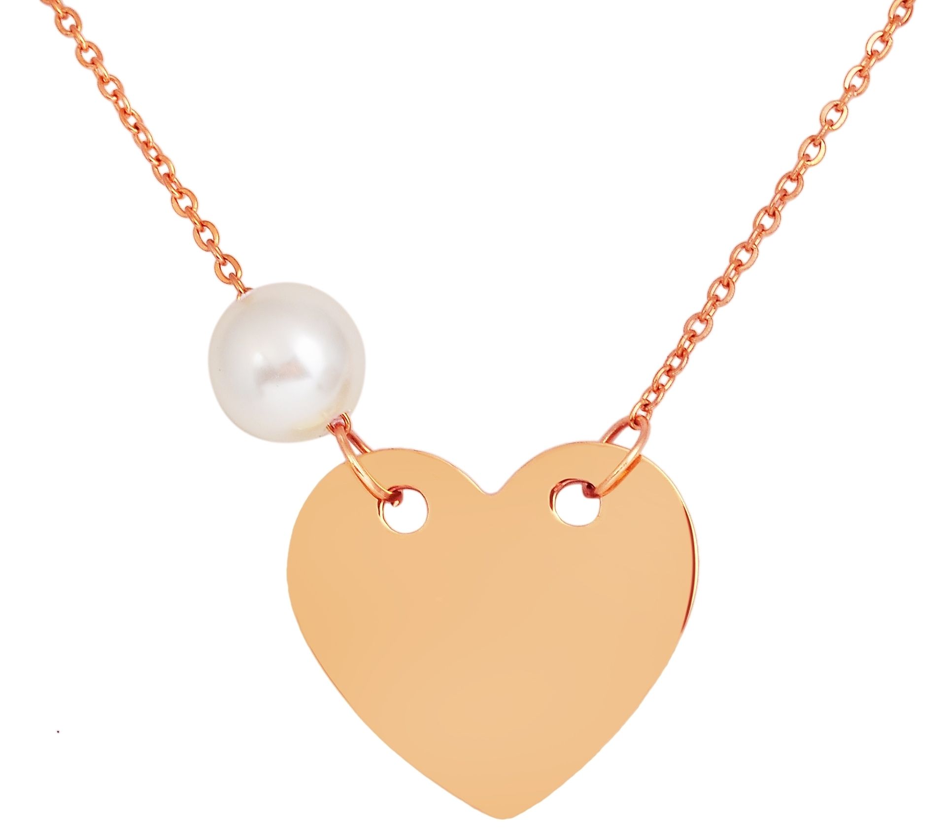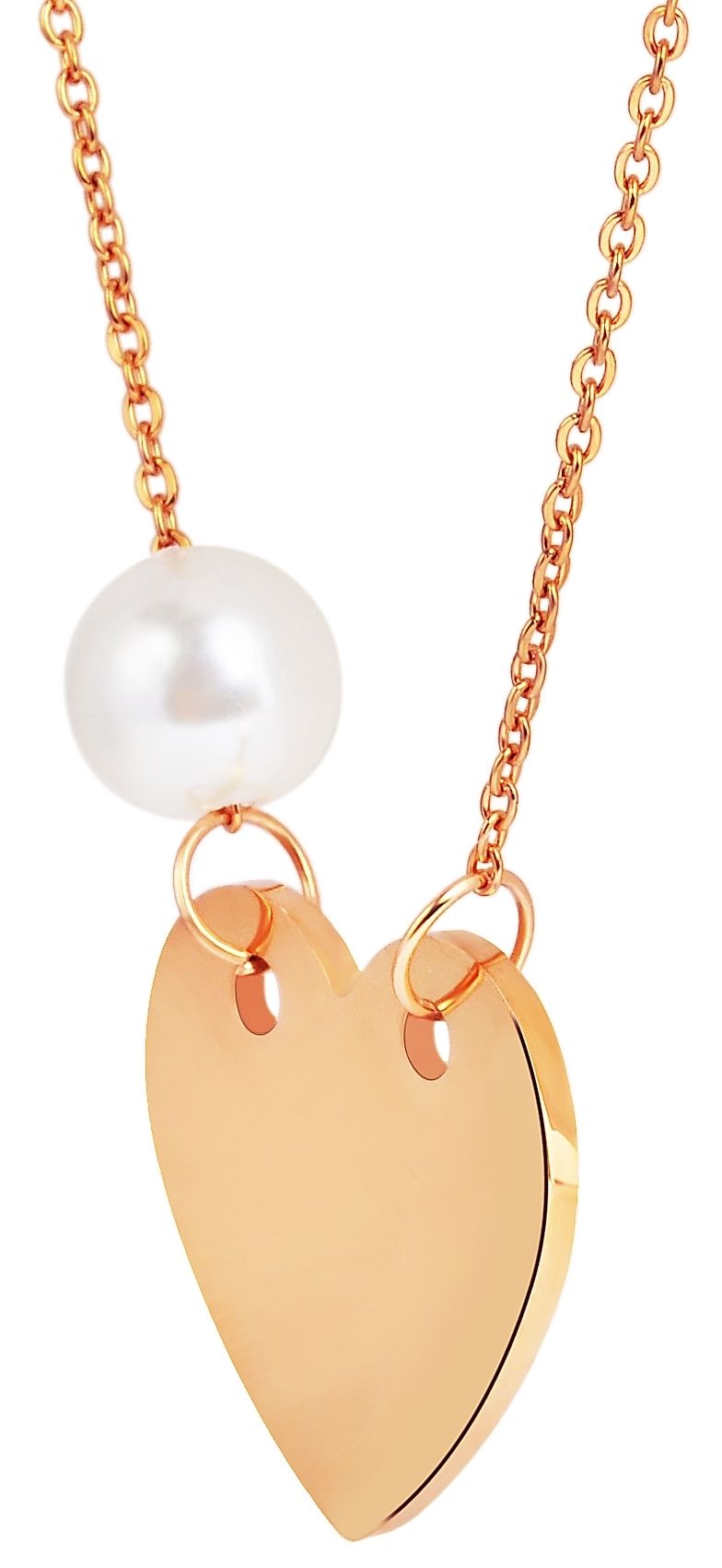 Productinformatie "Akzent Ankerkette aus Edelstahl, Herzanhänger und Kunstperle, roségoldfarben"