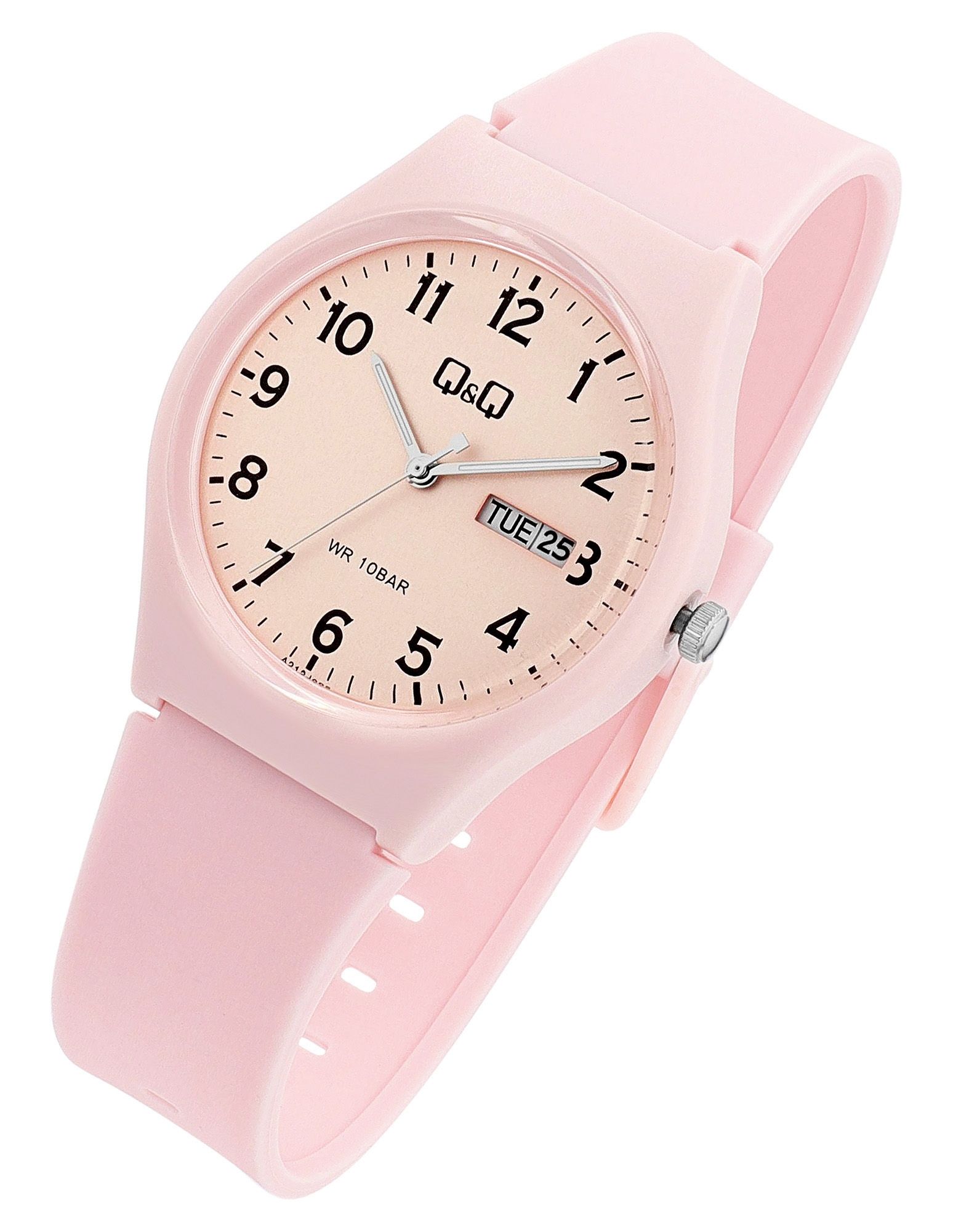 Ob Sport, Outdoor oder einfach der Alltag: Mit 10 ATM Wasserdichtigkeit ist diese Q&Q - by Citizen Watch Co. LTD Uhr Ihr zuverlässiger Partner. Duschen, Schwimmen – kein Problem!