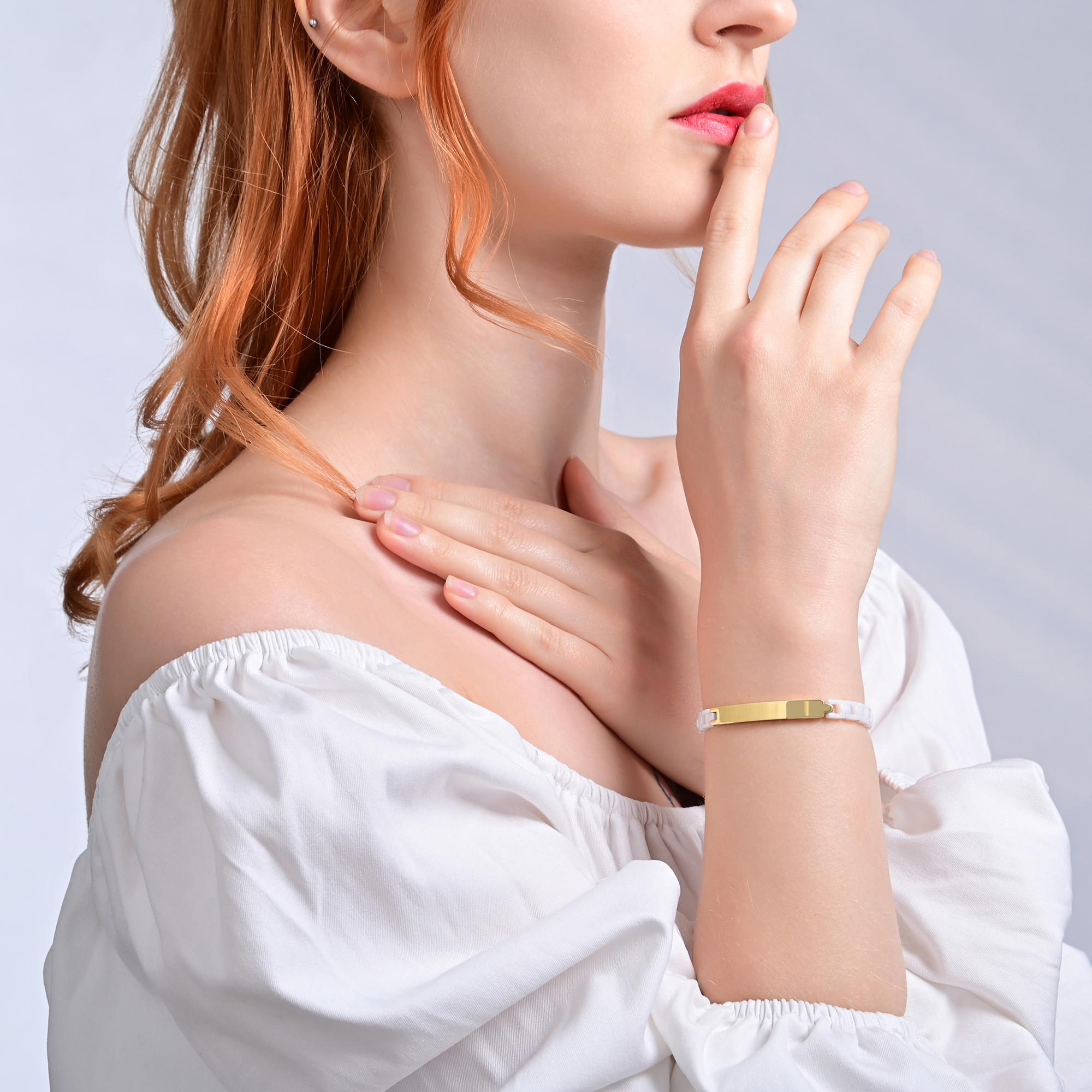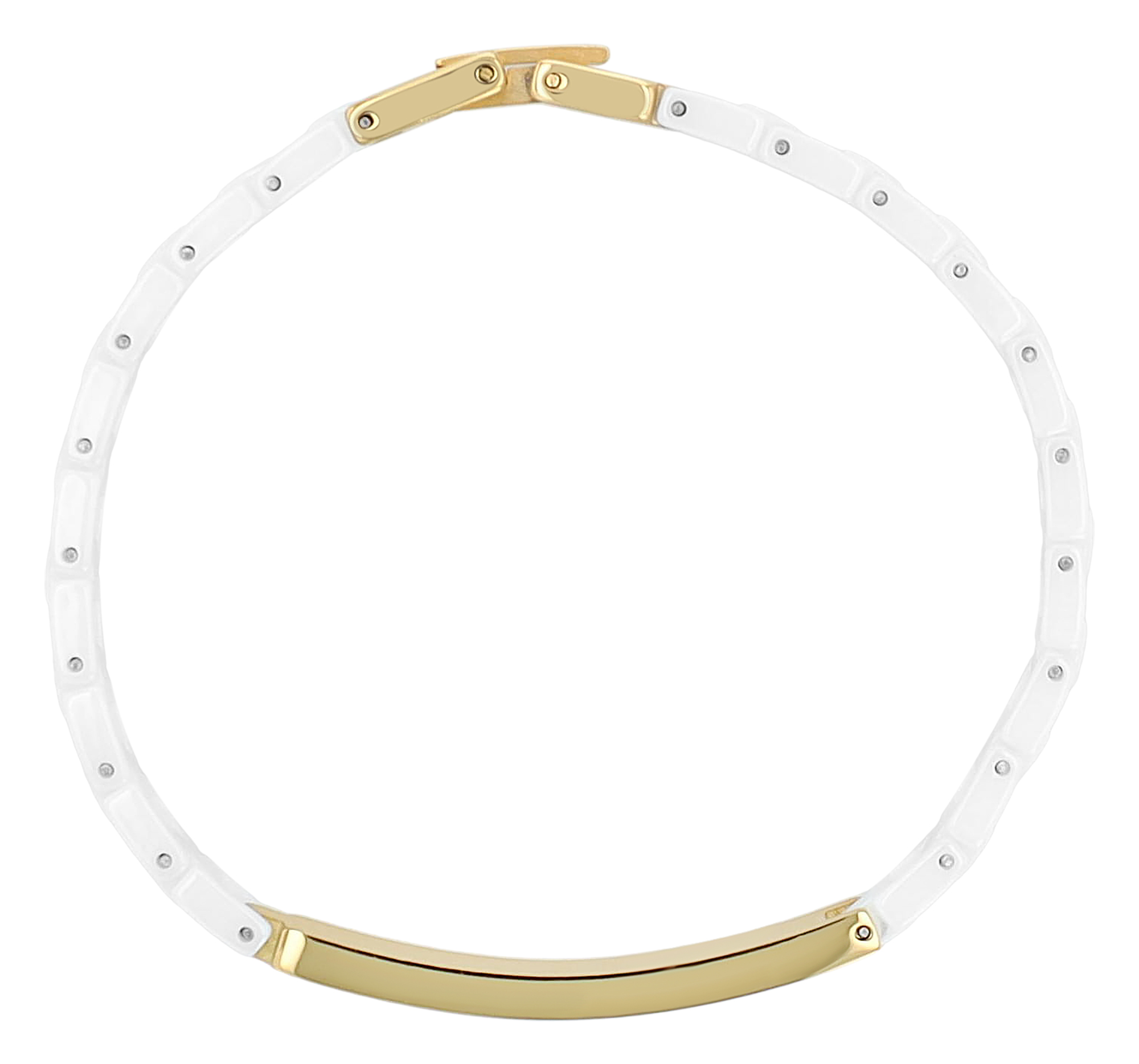Productinformatie ""Seoa" Edelstahl-Keramik ID-Armband, 18cm, Gravurplatte, weiß/ goldfarben"