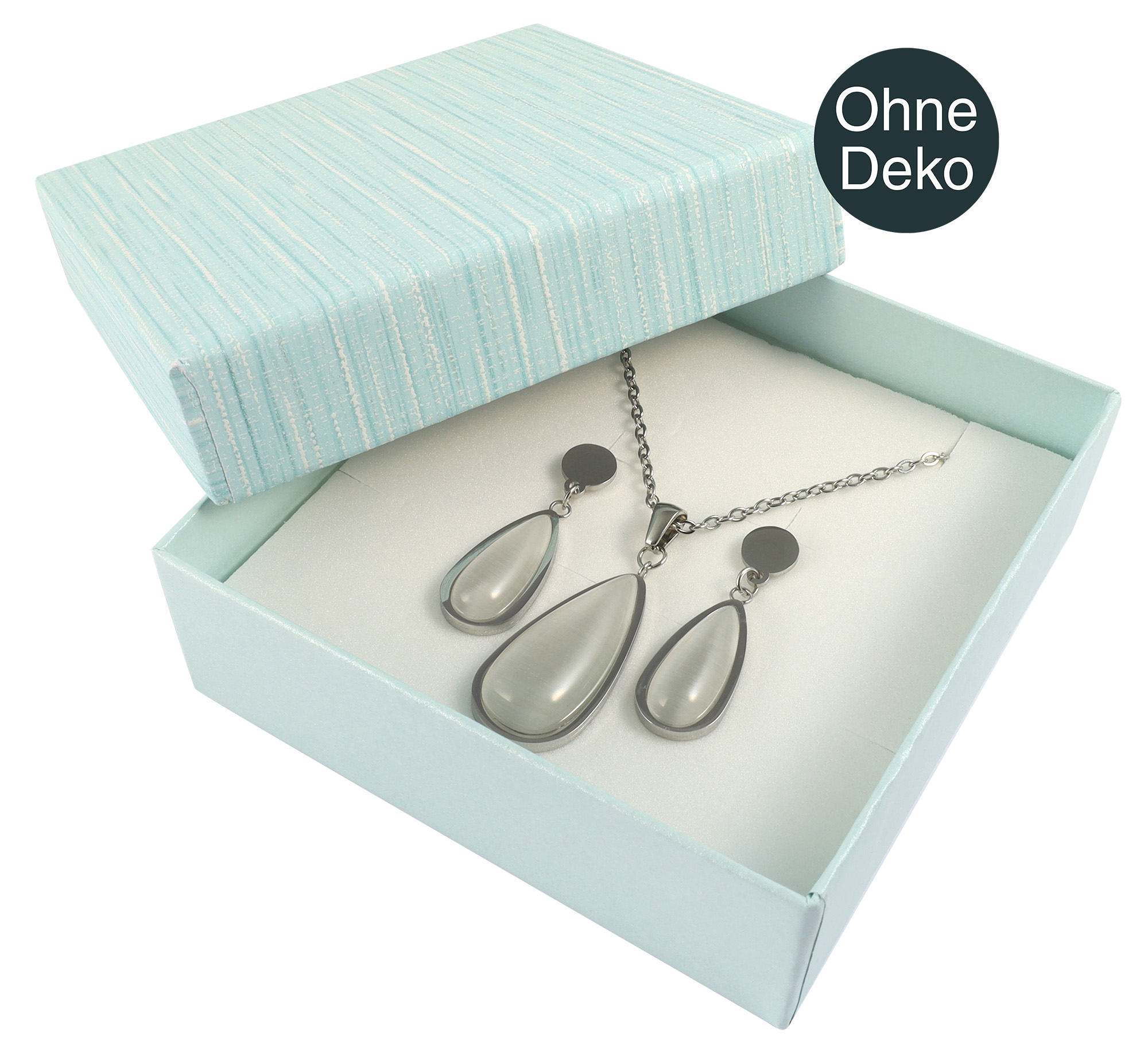 Diese bezaubernden hellblauen Schmuckschachteln in schlichtem Design sind nicht nur umweltfreundlich, sondern zugleich auch äußerst stilvoll durch ihre melierte, leicht strukturierte Oberfläche und ihre minimalistische Gestaltung. Im Inneren jeder Box befindet sich ein Schaumstoffkissen mit Polyesterbezug um Ihre kostbaren Schmuckstücke zu schützen und zu präsentieren. Erhältlich sind die Schmuckboxen in unterschiedlichen Größen und ihren entsprechenden Gebindegrößen:
