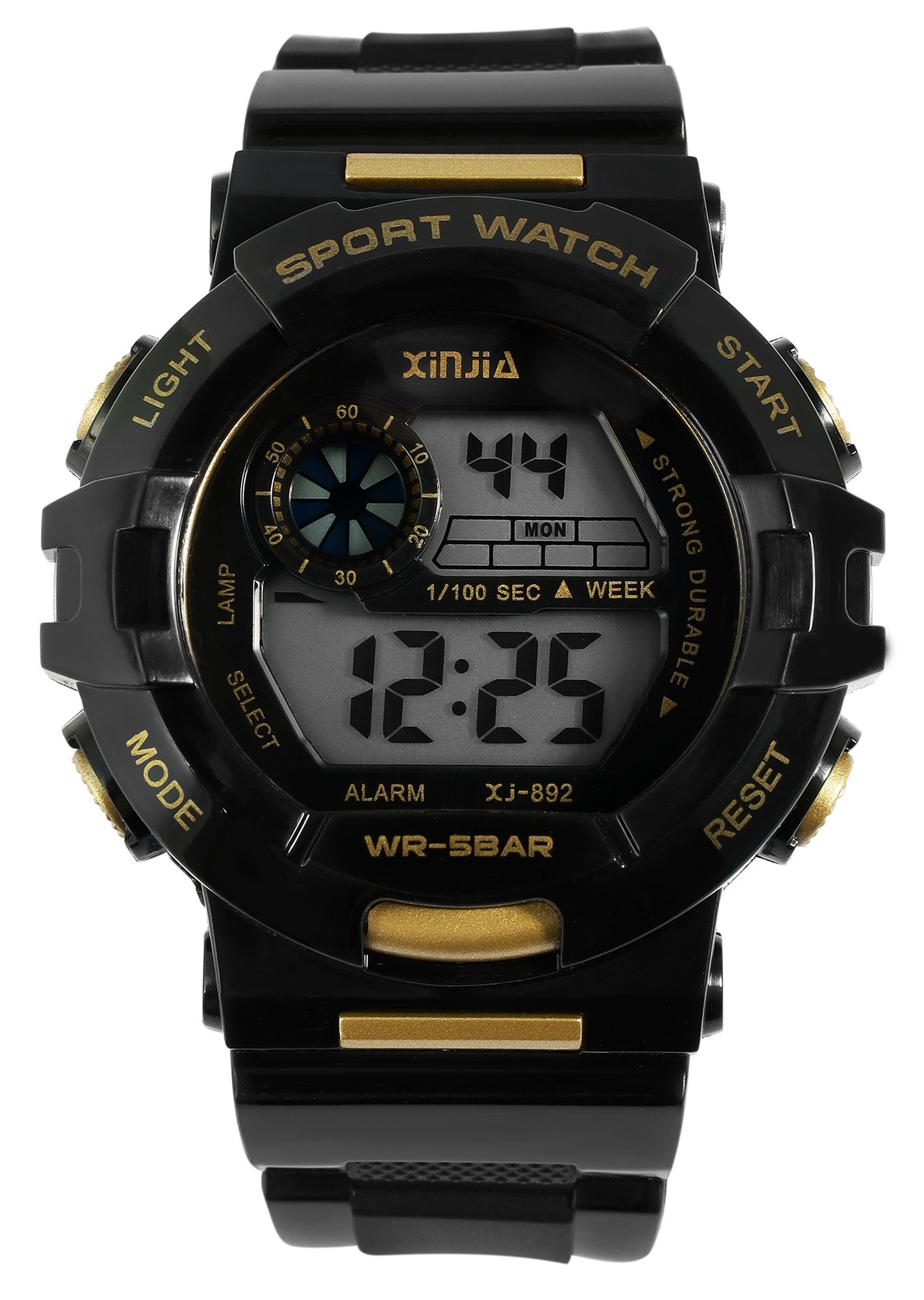 Productinformatie "Xinjia Unisexuhr Digitaluhr mit Silikonband, Schwarz/ goldfarbig"