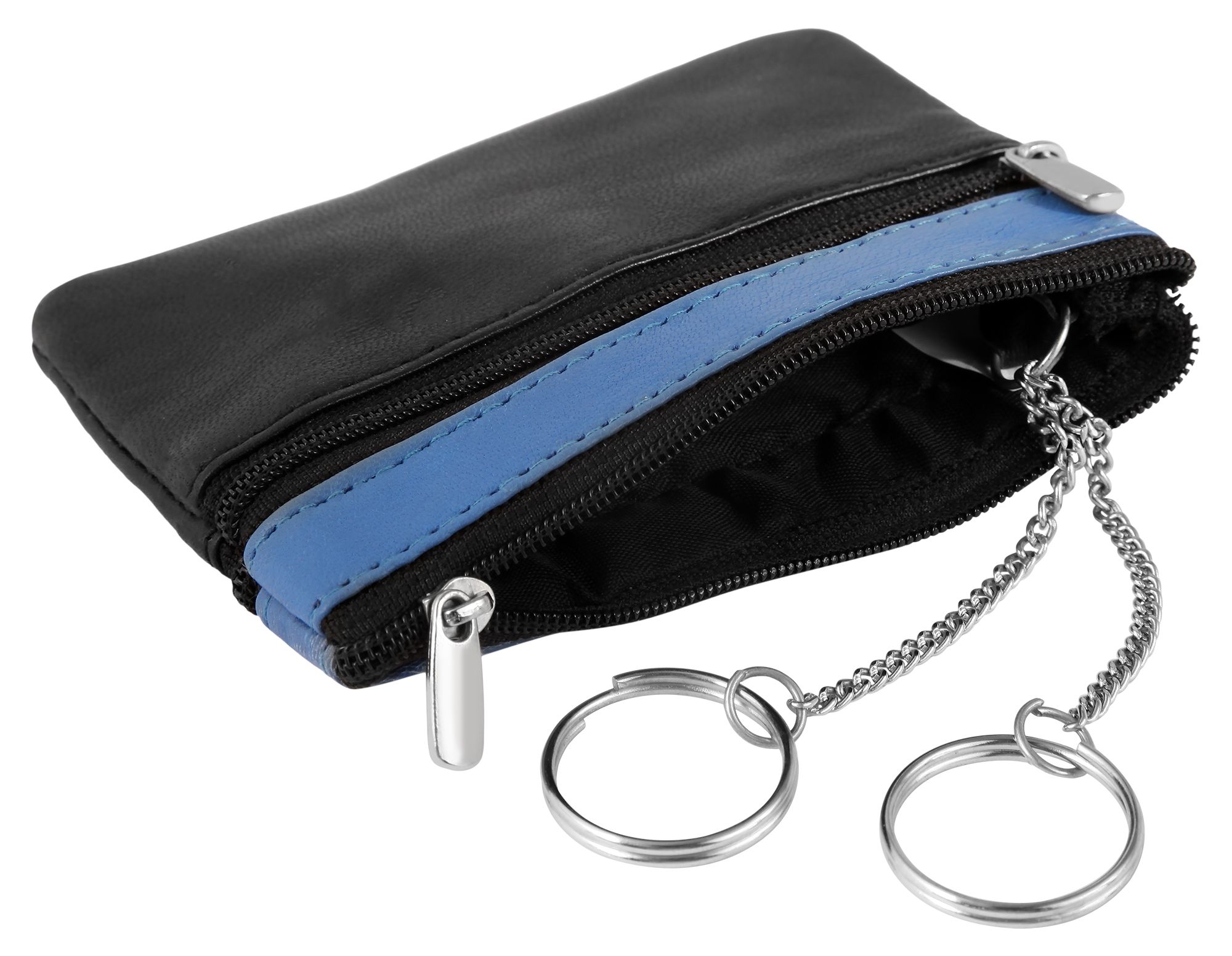 Productinformatie "Excellanc Schlüsselbeutel aus Echtleder in schwarz/blau"