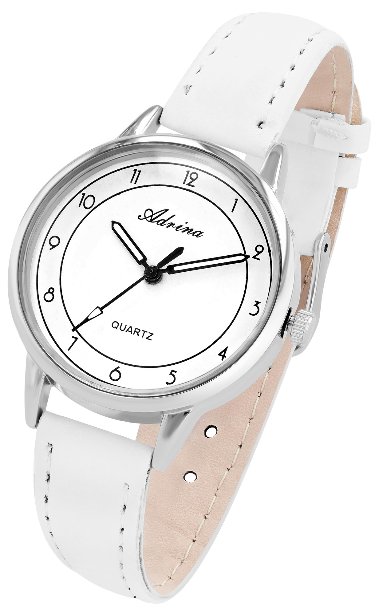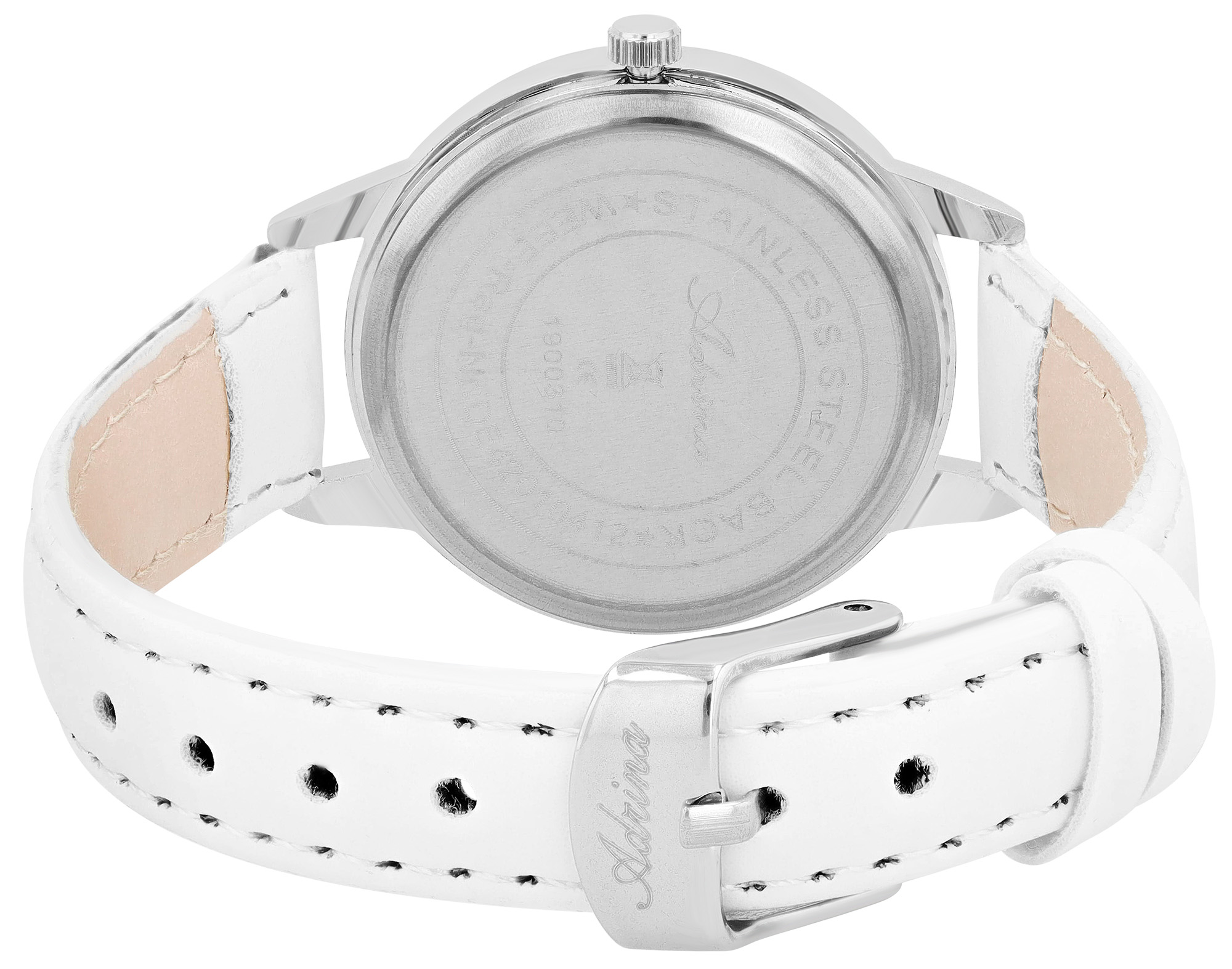 Productinformatie "Adrina Damenuhr mit Lederimitationsband, Ø 34 mm, weiß"
