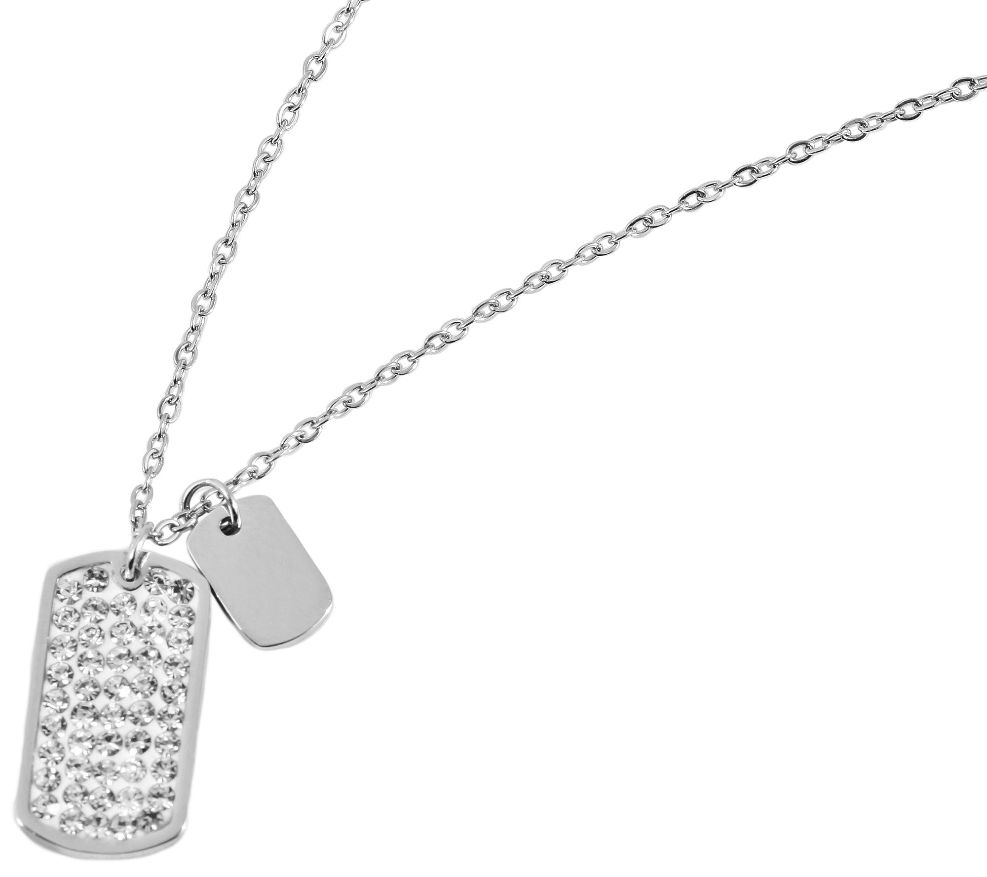 Productinformatie "Akzent Ankerkette mit DogTag-Anhänger, Edelstahl, Similibesatz, silberfarben"