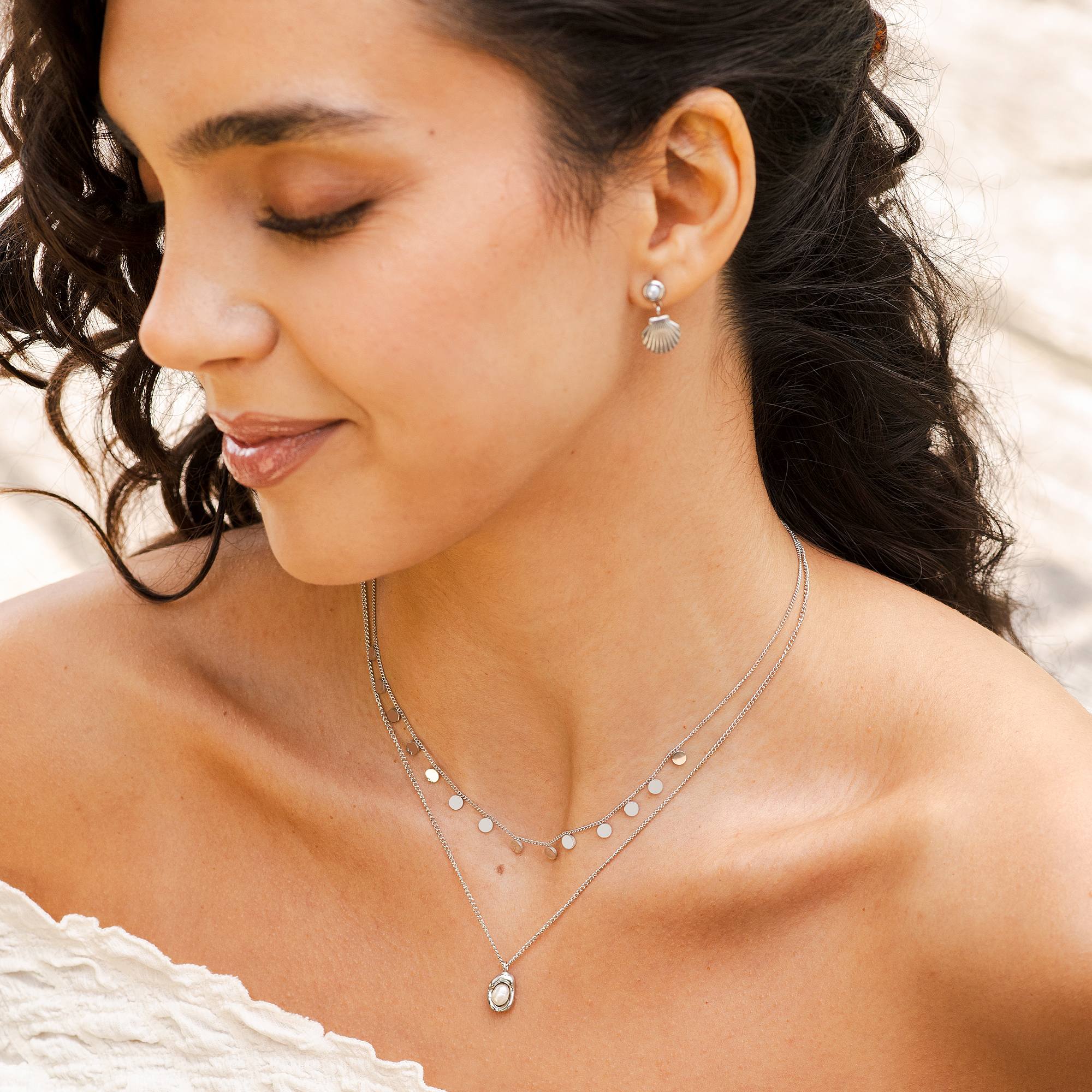 "Amar" - delicaat maar betoverend, het is een onmisbaar accessoire voor de warme dagen van deze zomer. De ketting is 40 cm lang en heeft een extra verlenging van 5 cm zodat je de lengte naar wens kunt aanpassen.