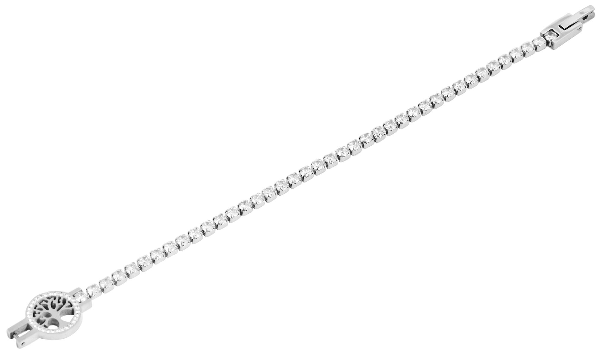 Productinformatie "Akzent Schmuckarmband aus Edelstahl, Similibesatz, Lebensbaum, Länge 17 cm"
