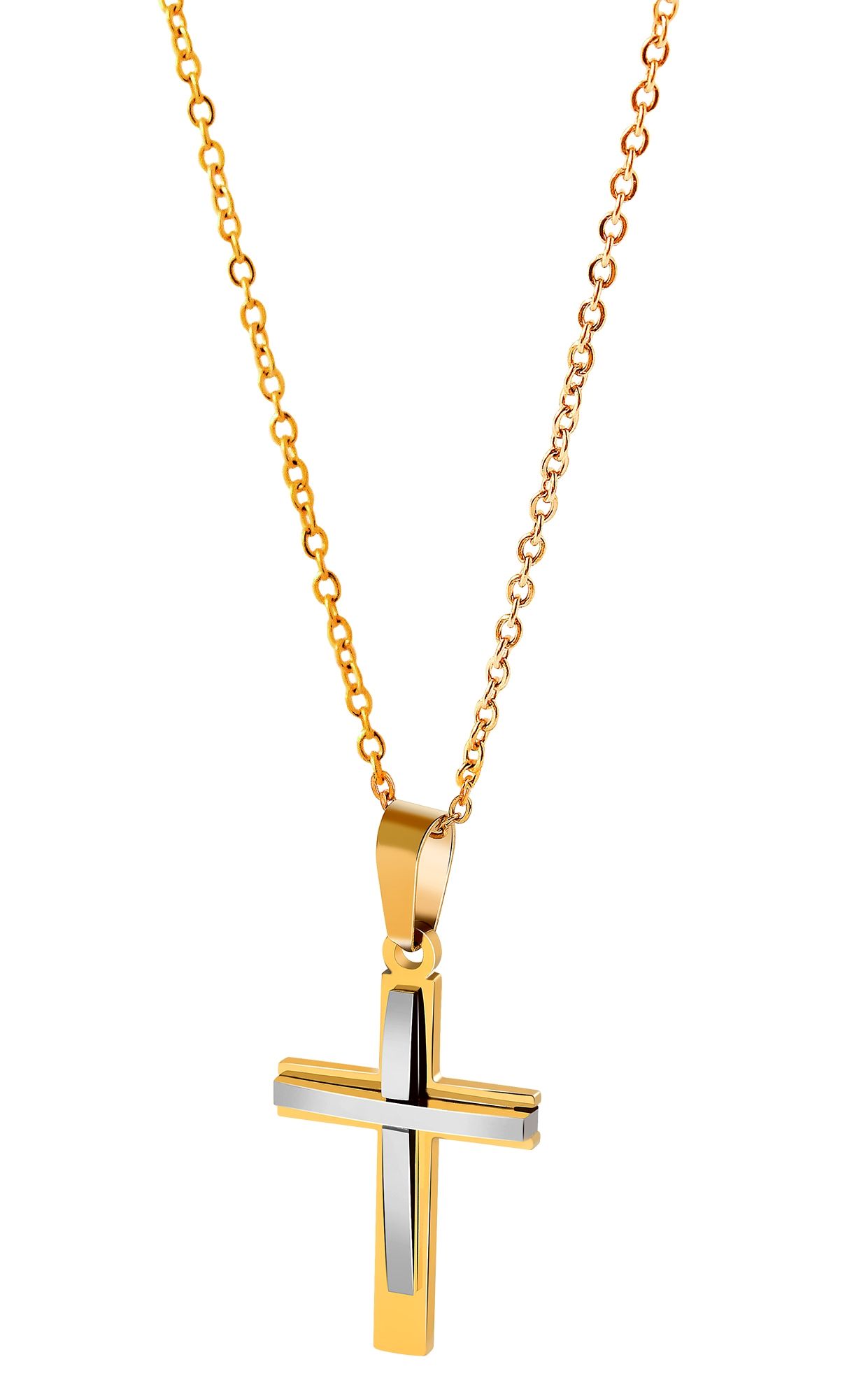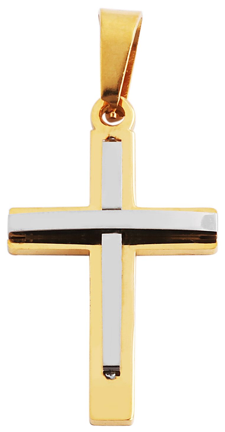 Productinformatie "Akzent Kreuzanhänger aus Edelstahl, bicolor"
